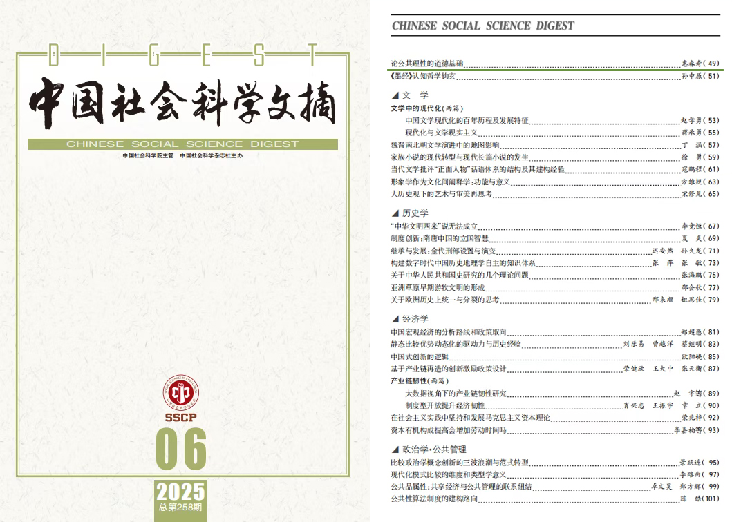 华东师范大学哲学系副教授惠春寿《论公共理性的道德基础》一文被《中国社会科学文摘》2025年第6期转载。文章摘自《伦理学研究》2025年第1期。