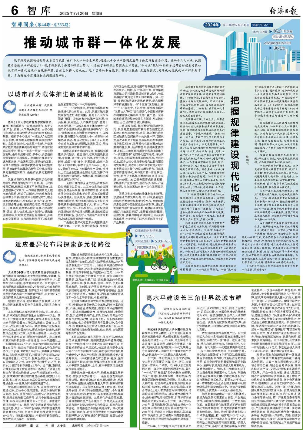 华东师范大学中国行政区划研究中心主任、地理科学学院教授孙斌栋《高水平建设长三角世界级城市群》一文刊登在2025年7月20日《经济日报》。
