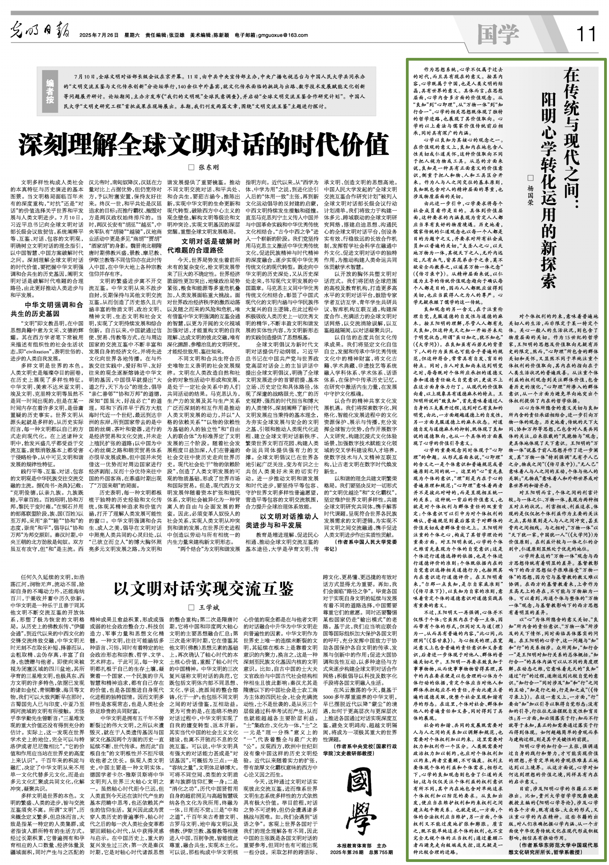 华东师范大学中国现代思想文化研究所所长、哲学系教授杨国荣《在传统与现代之间:阳明心学转化运用的新探索》一文刊登在2025年07月26日《光明日报》。