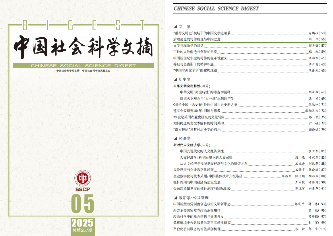 华东师范大学中文系教授刘阳《探讨后理论史的写作机理与中国立意》一文被《中国社会科学文摘》2025年第5期转载。文章摘自《社会科学》2025年2期。