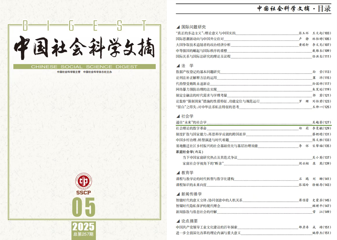 06|吴越菲副教授文章被《中国社会科学文摘》全文转载,探讨通往“未来”的社会学