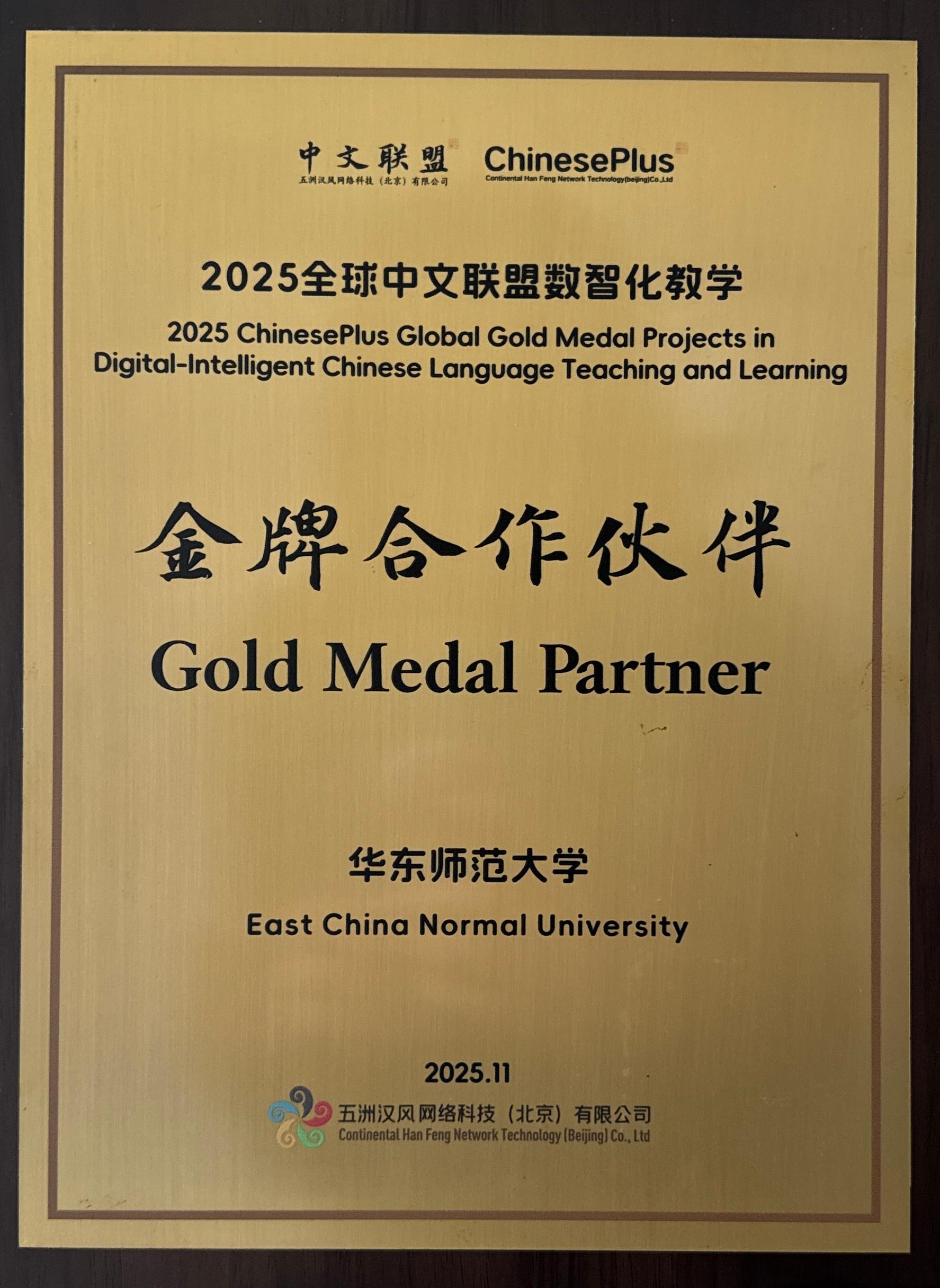 华东师范大学荣获“2025全球中文联盟数字化教学金牌合作伙伴”