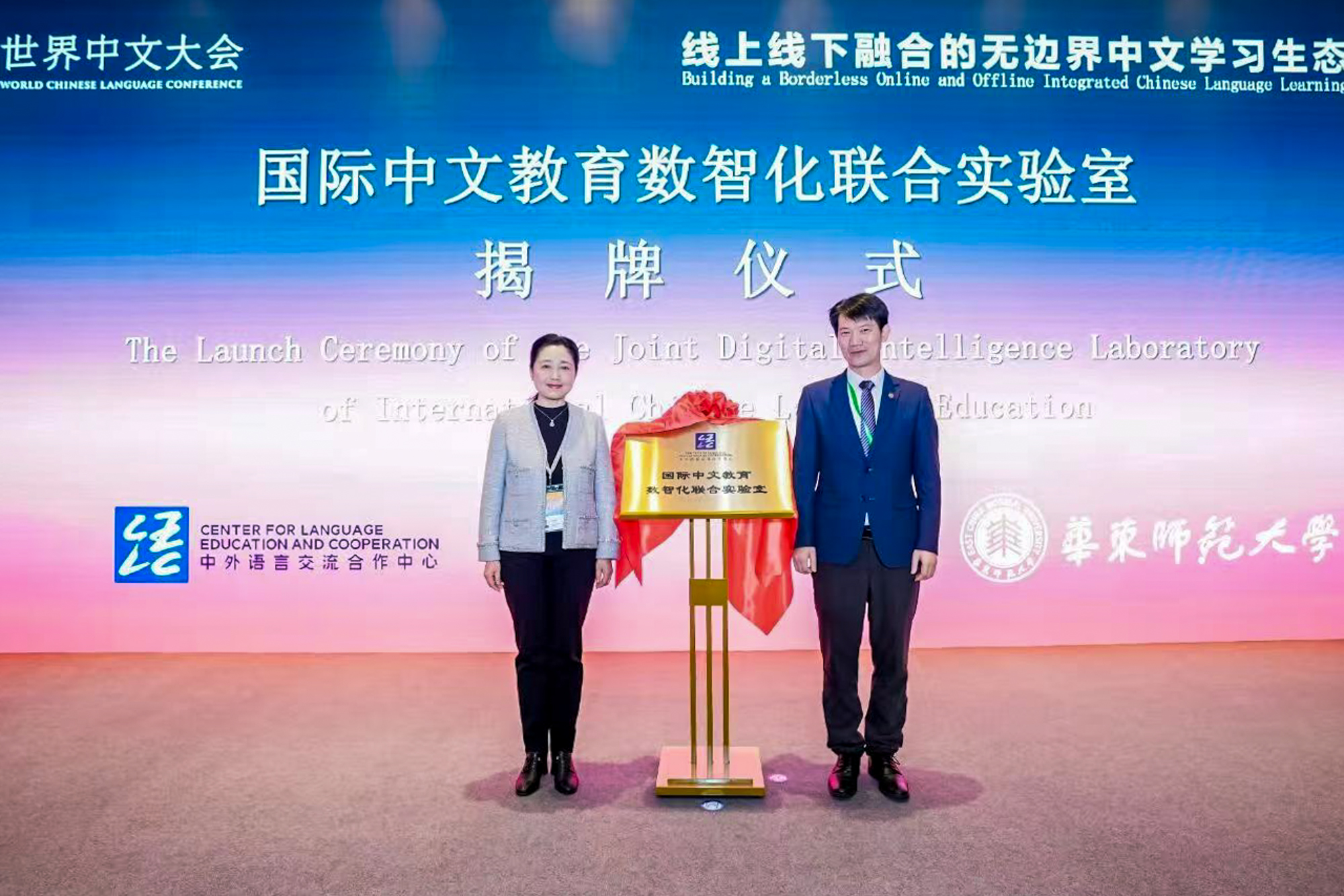 “水杉中文”平台在世界中文大会上取得的系统性成果,充分彰显了华东师大在国际中文教育数智化转型中的引领地位与示范价值。会议期间,由语合中心与华东师范大学共建的“数智化联合实验室”正式揭牌成立,标志着我校在推动中文教育智能化发展方面迈出关键一步。