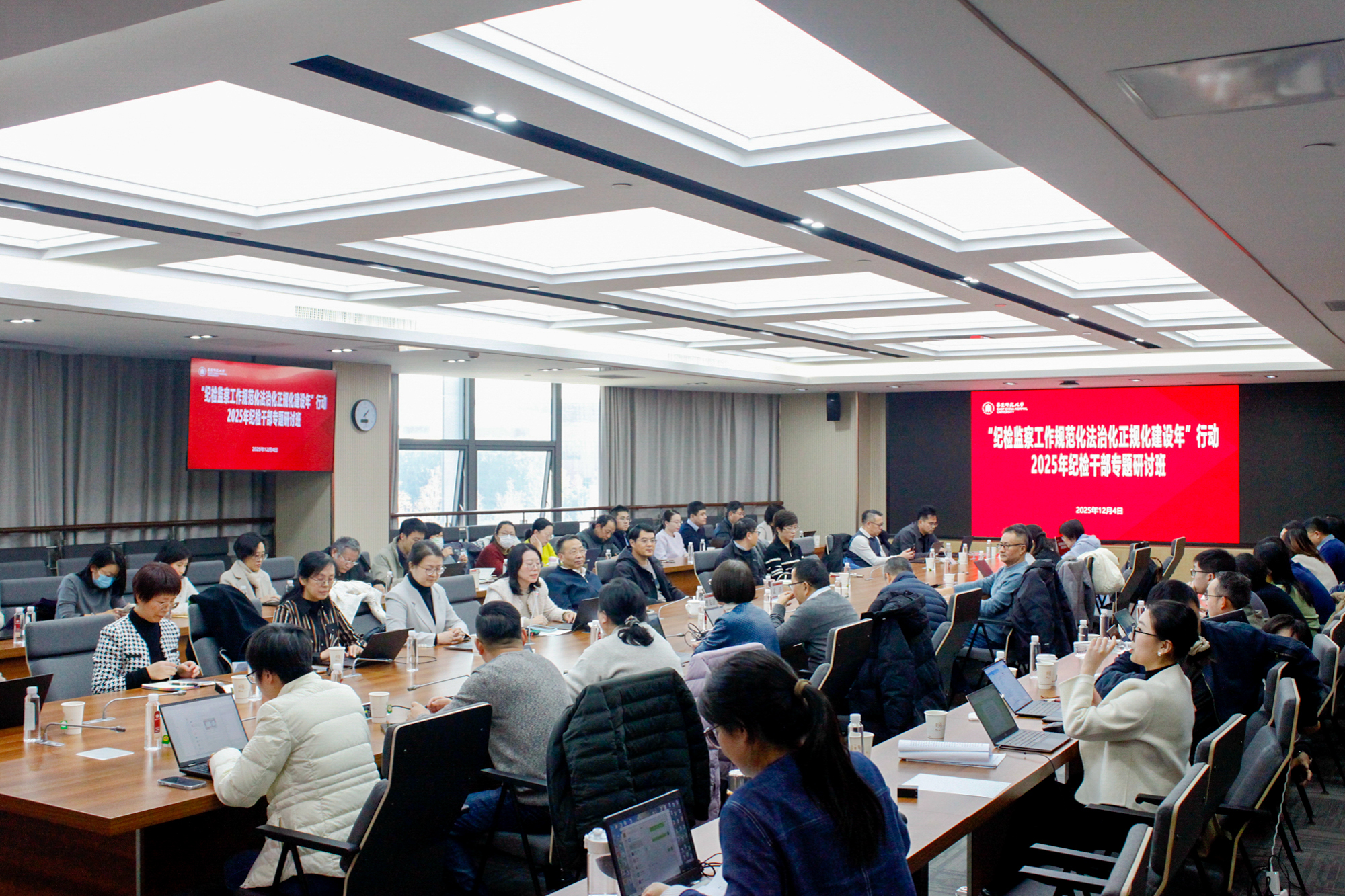 12月4日,2025年学校纪检干部专题研讨班第四次集中学习邀请孟涛教授作《“四种形态”在纪检监察工作中的运用》专题报告,梳理了“四种形态”的诞生与发展,阐释其内涵及适用规则,并结合典型案例讲解了“四种形态”之间的转化逻辑,针对“行转纪”案件的难点问题进行了解析,为纪检干部精准运用“四种形态”、进一步提升纪检监察工作的规范化法治化正规化水平提供了重要的理论指导。