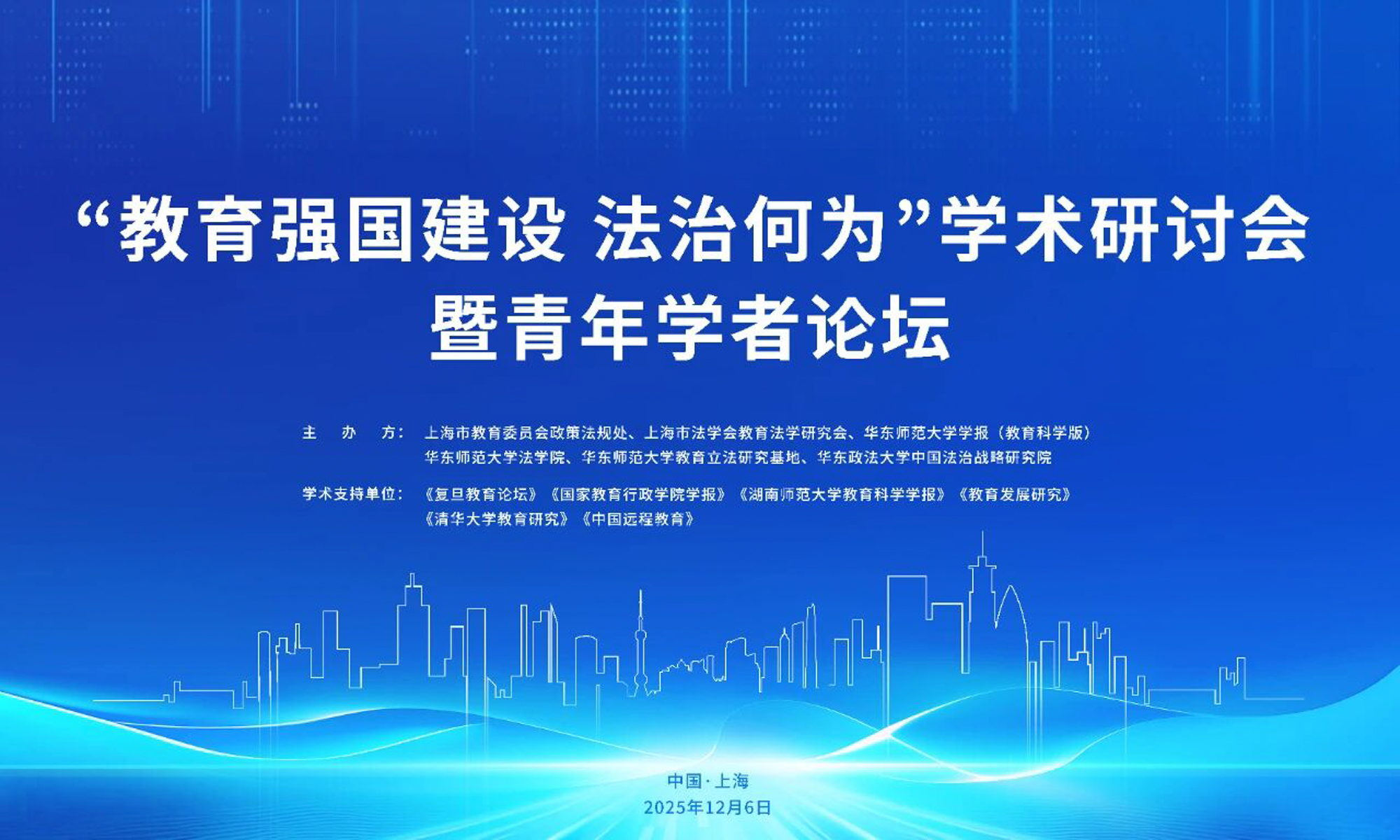 围绕法治保障教育强国建设的核心议题,“教育强国建设,法治何为”学术研讨会暨青年学者论坛将于12月6日在华东师大普陀校区举办,为推动教育法学研究繁荣发展、服务国家教育法治建设战略需求,注入思想动能、提供学理支撑。