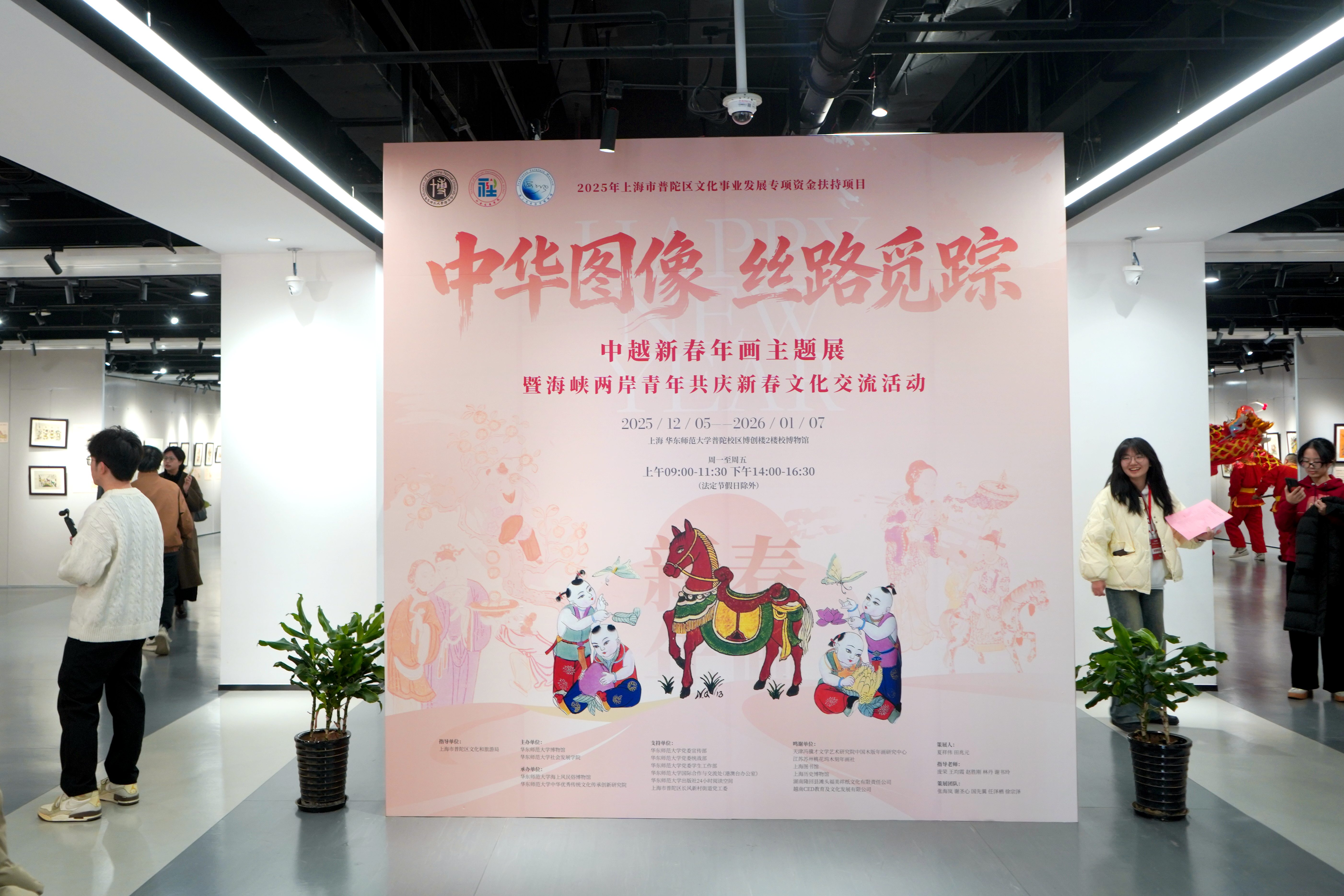12月5日上午,2025年上海市普陀区文化事业发展专项资金扶持项目“中华图像丝路觅踪:中越新春年画主题展暨海峡两岸青年共庆新春文化交流活动”在华东师大博物馆开幕。展览生动展现了中越年画“同源异彩”的文化对话过程,设“一脉相承”“礼像同源”“风土异彩”“丝路文兴”四大篇章,汇集国内多地及越南东湖年画精品百余幅,是国内近年来体系较为完整的中越年画专题展。