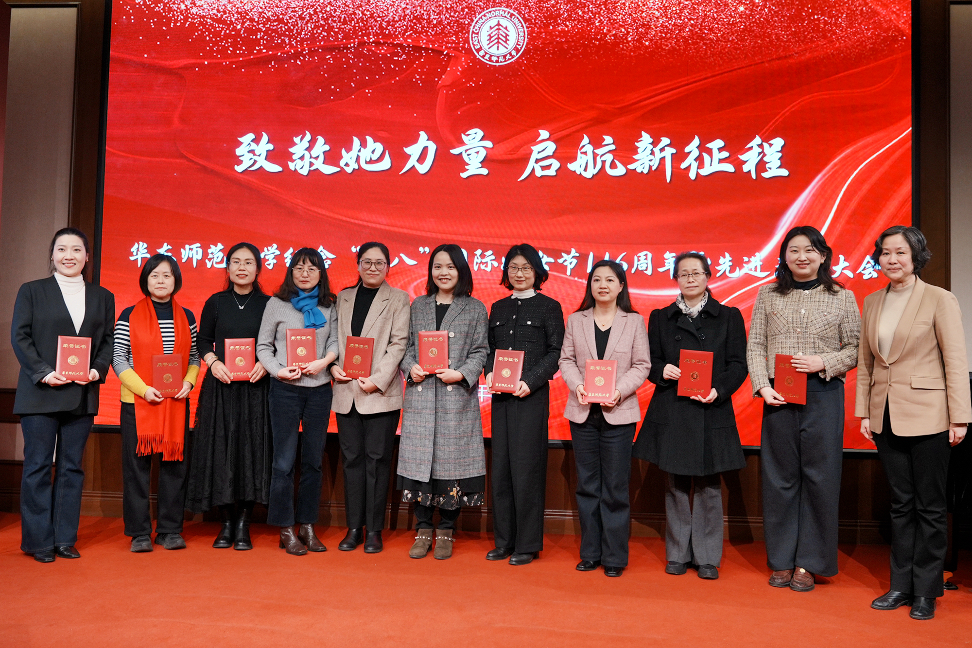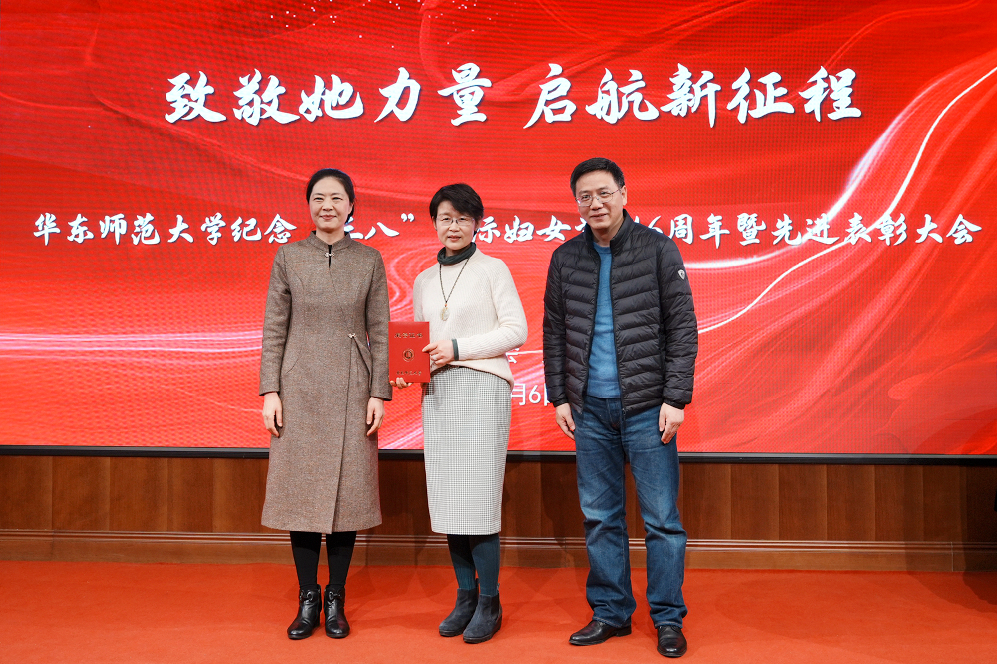 3月6日,华东师范大学纪念“三八”国际妇女节116周年暨先进表彰大会举行。校长马余刚,副校长、工会主席、妇委会主任程静出席会议,并为获奖个人和单位颁奖。校工会两委委员,妇委会委员、各部门工会主席、女工委员、女大学生代表以及获得各类荣誉称号的先进个人和先进集体代表等齐聚一堂,共庆节日。