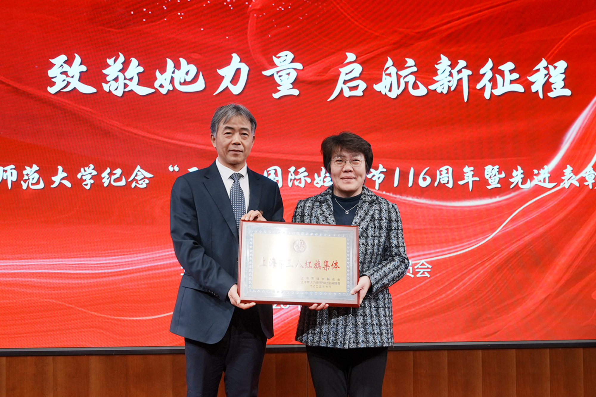 副校长、工会主席、妇委会主任程静宣读了2025年度上海市及华东师范大学各类先进女性(集体)表彰名单。