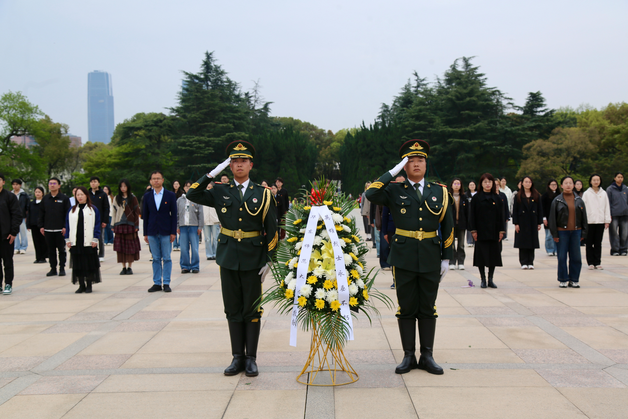 在英烈祭奠区,同学们手持鲜花和写有寄语的明信片,依次敬献在革命烈士墓前,与英烈进行一场跨越百年的精神对话,传承红色薪火。2025级法学院研究生张诗钰表示,“献花时,我的动作很轻,但心里却觉得沉重。手中的花,承载的不仅是对先烈的追思,更是一种无声的承诺。”