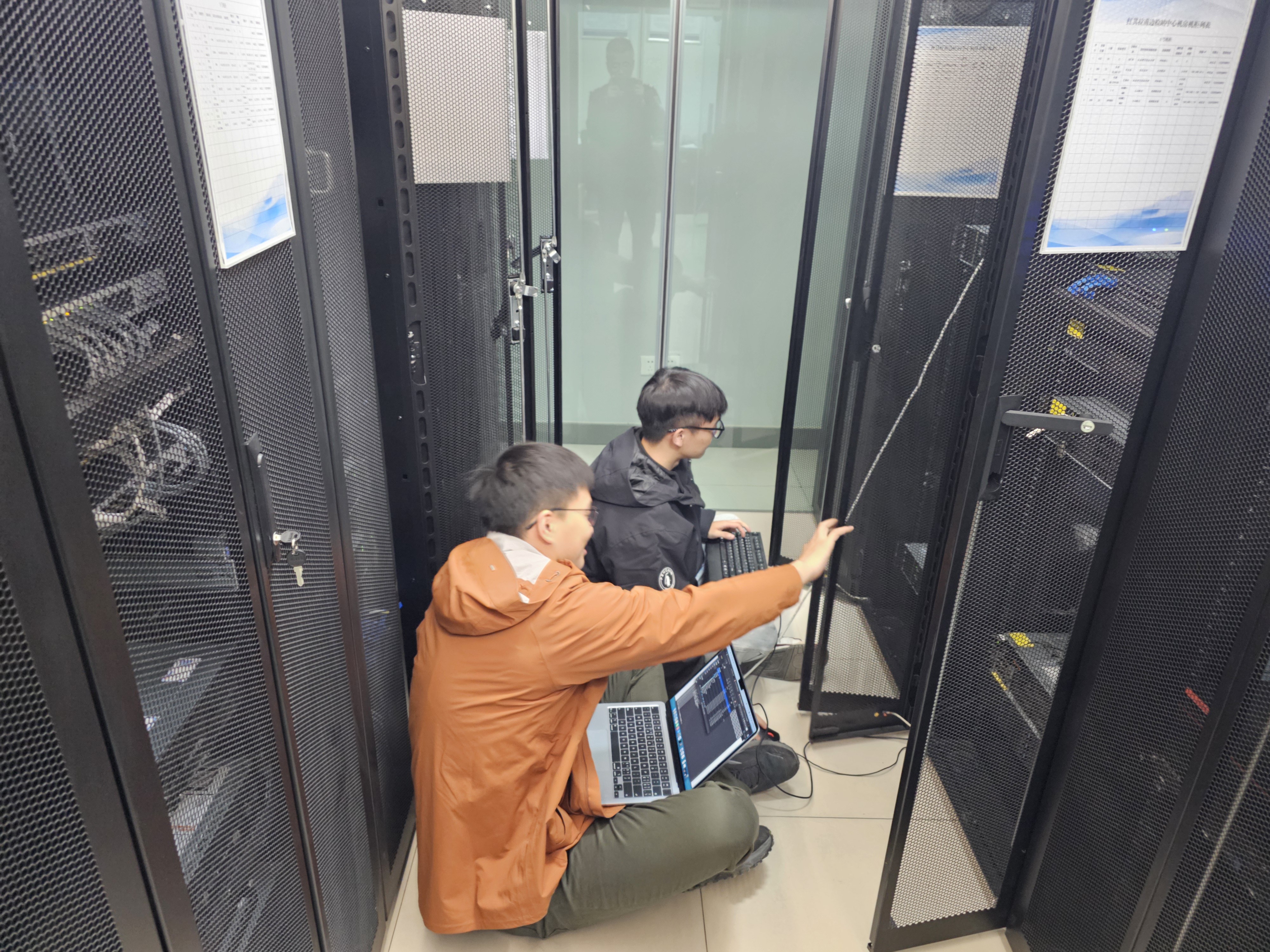 华东师大团队成员在红其拉甫出入境边防检查站机房调试系统