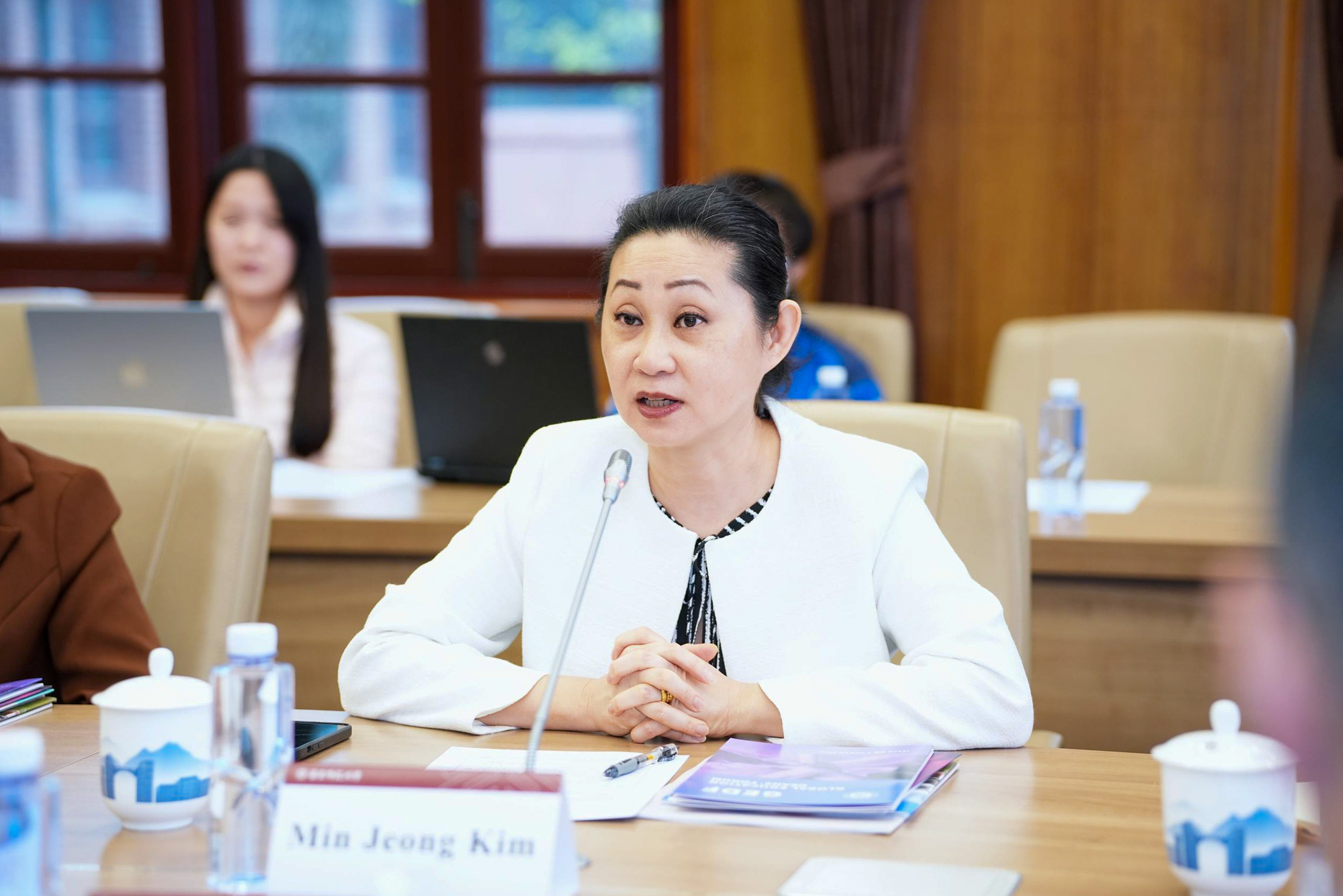 金玟廷(Min Jeong Kim)对华东师大为本次来访所做的精心筹备表示诚挚感谢,高度肯定挂职ICUA担任执行主任的张薇教授的关键桥梁作用。她提及华东师范大学原校长陈群新任联合国教科文组织教育助理总干事,将进一步拉近巴黎总部与华东师大的合作距离,期待双方以技术创新为抓手,深化教育数字化与课程变革合作,共推全球优质教育目标实现。