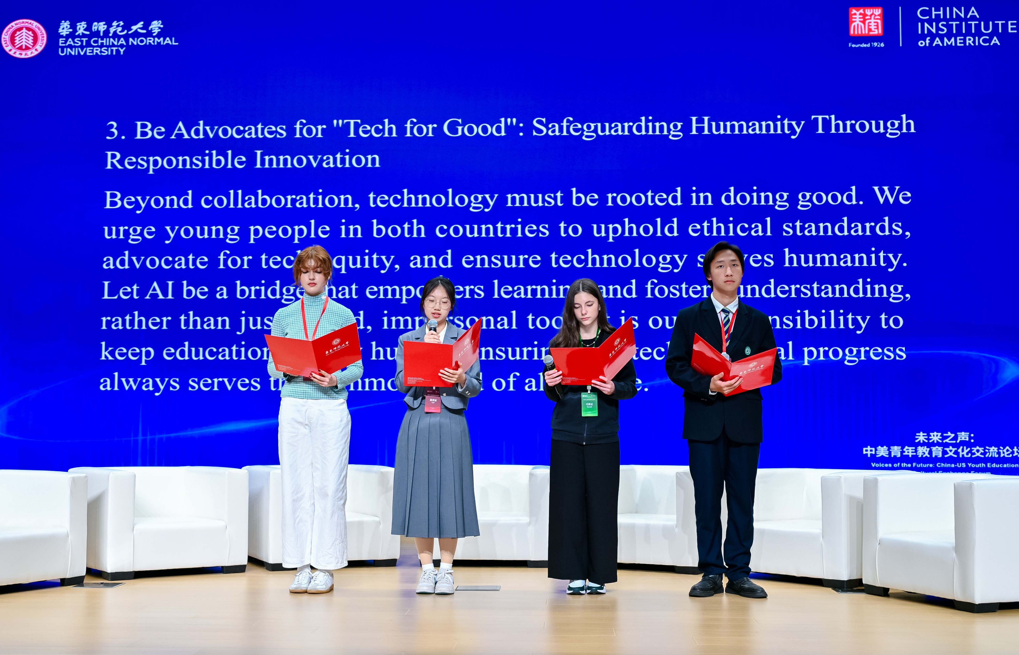 论坛期间,中美青年联合发布了《智汇青春,共筑未来——中美青年对人工智能时代未来学习的联合倡议》,呼吁两国青年做交流的行动者、合作的推动者、科技向善的践行者。