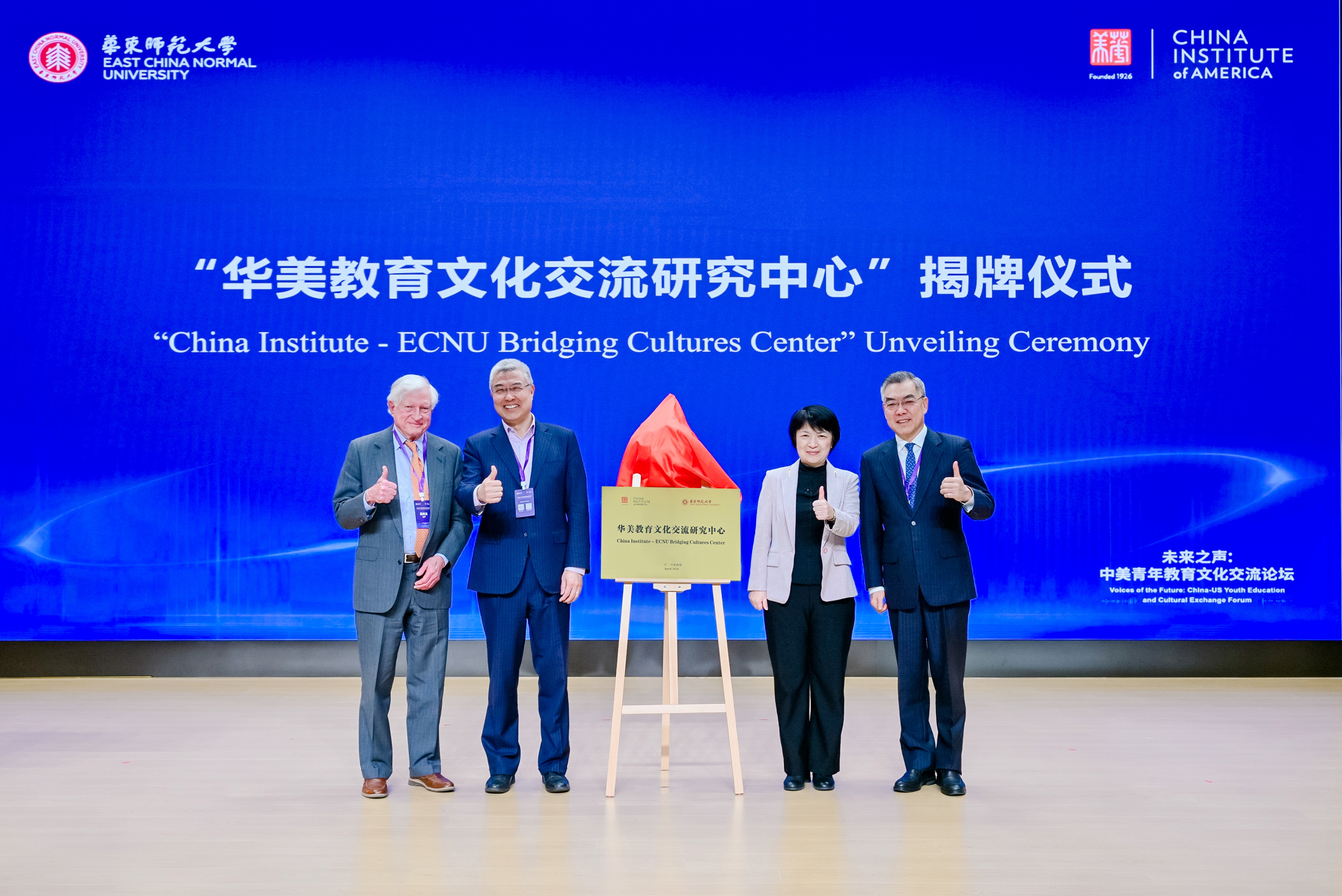 在华东师范大学校友、中国驻纽约原总领事、中国美国人民友好协会副会长黄屏与华美协进社联合主席Peter B. Walker的共同见证下,华东师范大学校务委员会主任梅兵与葛晓初共同为“华美教育文化交流研究中心”揭牌。