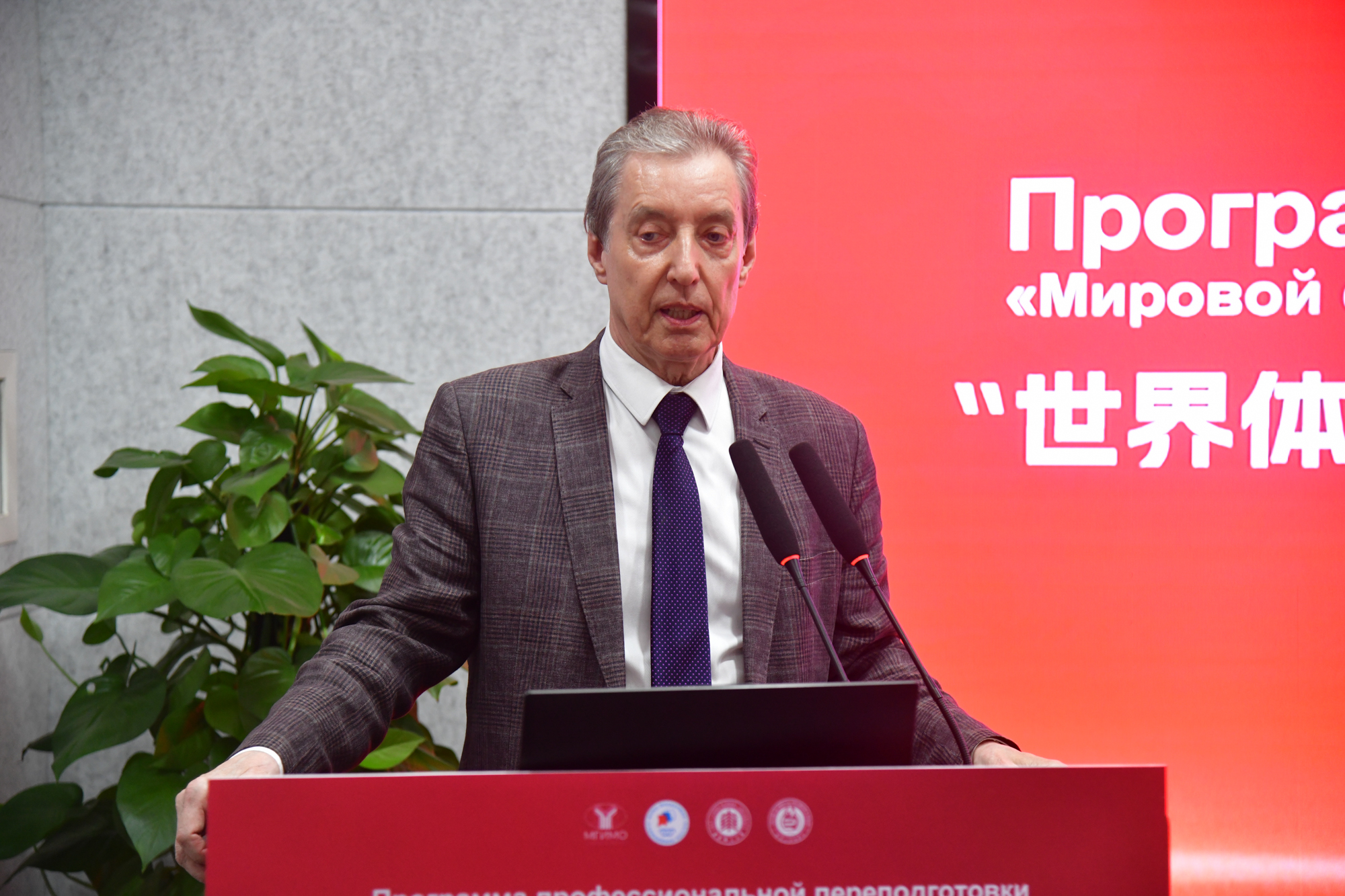 亚历山大·卡图舍夫在发言中高度评价华东师范大学在体育领域的卓越成就。他指出,中俄两国在体育等各领域的紧密合作是全球稳定的重要保障力量,近年来两国元首共同宣布举办体育年、文化年及教育年,为双边关系注入强劲动力。卡图舍夫先生介绍,俄罗斯奥林匹克运动员基金会作为推动体育赛事发展的重要机构,六年来已培养五百余名专业研修人才,其中许多学员已成为俄罗斯体育赛事和体育组织的中坚力量。他特别提到,一同出席开幕式的菲利波娃女士正是该研修项目的往期学员,如今已在重要岗位发挥作用。卡图舍夫先生表示,中俄体育合作没有界限,不受外部力量干扰,期待通过此次研修取得更多成果,推动两国体育事业携手共进。