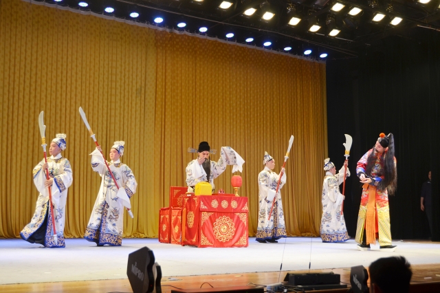 整场演出结构严谨,环环相扣,一气呵成,吸引观众情不自禁投入其中。这部戏唱词的细腻婉转,人物情感的丰富深刻,都由戏剧演出者表演得入木三分。四郎拜母时,一句“千拜万拜也是折不过儿的罪来”,将十几年来骨肉分离的痛楚,淋漓尽致地展现在眼前。两军对峙,剑拔弩张,四郎冒杀身之祸潜入宋营探母,依次与家人相见。在声声更鼓的催促下,诉不尽的离愁别绪、家国情怀。而在辽国,铁镜公主仗义相助,有勇有谋,深情等待驸马归来。唱词中的“船到江心马临崖”,正是四郎凄楚心情的写照。情感间的巨大冲突,使得演出张力十足,扣人心弦。