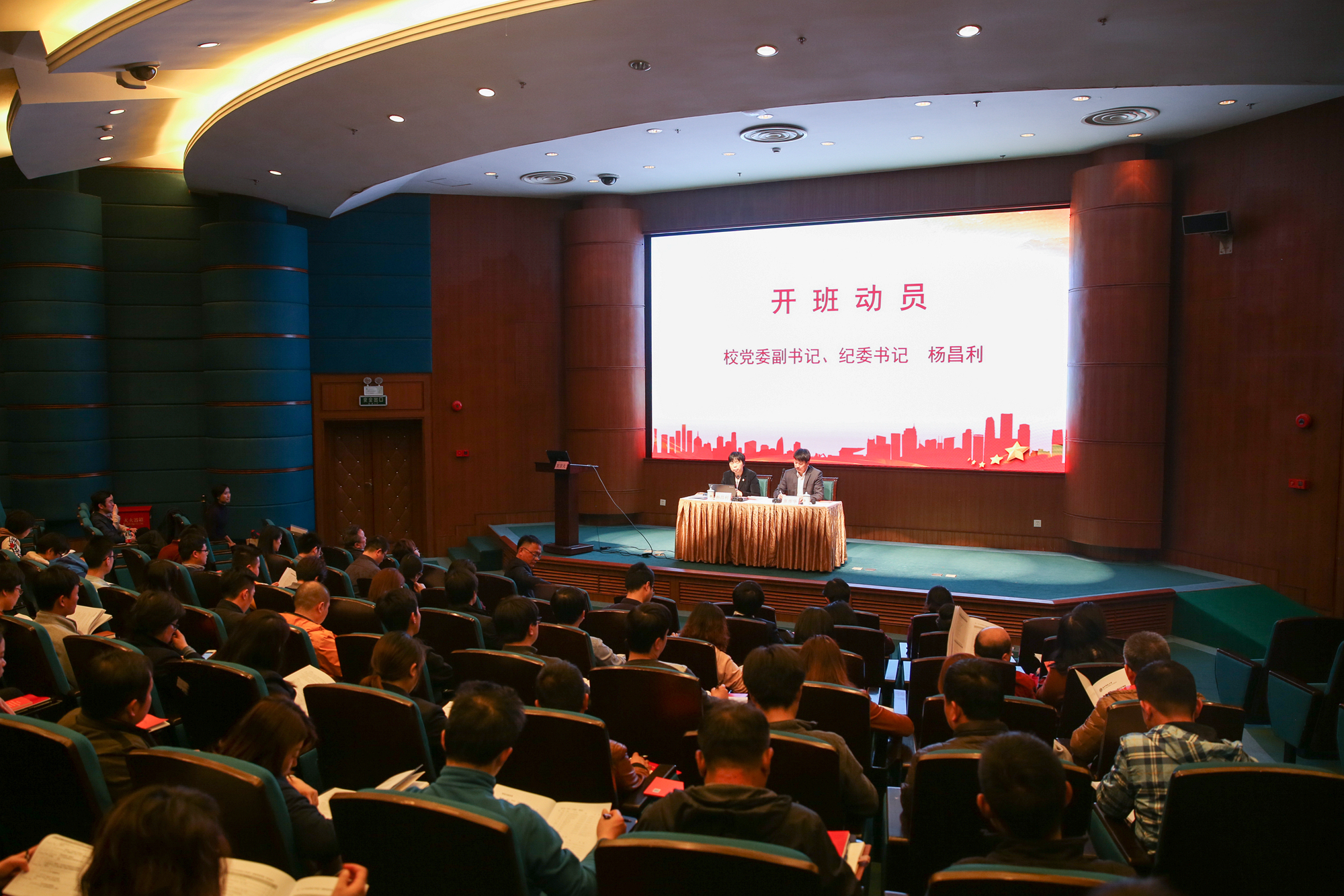 杨昌利做开班动员报告。她阐明了培训的背景、目的和要求,强调校党委历来重视对教师干部的培训,建设高水平、高素质的师资队伍和干部队伍是学校未来发展的关键所在。她指出,今年是学习贯彻党的十九大精神的开局之年,也是学校“双一流”建设的关键之年,希望培训班通过研修和研讨,提高广大教师和党员干部的党性修养、专业能力和综合素质,同时借助这个交流平台,广开言路,凝聚共识,集聚更多的智慧与力量,共同推动学校新一轮发展。她表示,本次培训以习近平新时代中国特色社会主义思想为指导,通过专题报告、案例教学、经验分享、拓展训练、现场教学等方式开展研修活动,力求达到“加强理论学习,坚定理想信念”“坚持育人为本,提升师德师风”“增强履职能力,助力学校发展”等目的。她寄语学员们珍惜机会、重视学习,通过研修努力提升理论修养、责任意识、大局观念、育人水平,将学习培训中所学所获用于工作实践,积极投身立德树人和学校“双一流”建设,努力成为 “先进思想文化的传播者、党执政的坚定支持者、学生健康成长的指导者”。