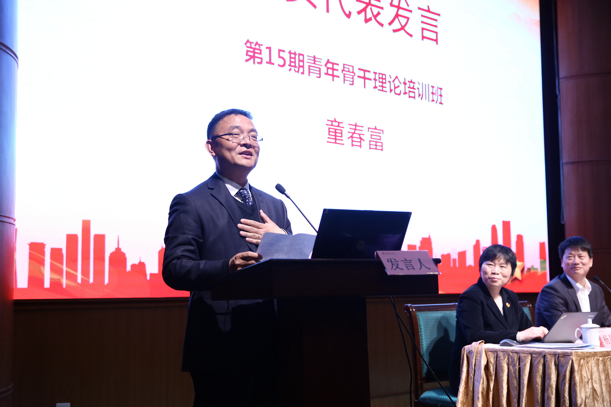 第15期青年骨干理论培训班班长童春富作学员代表发言