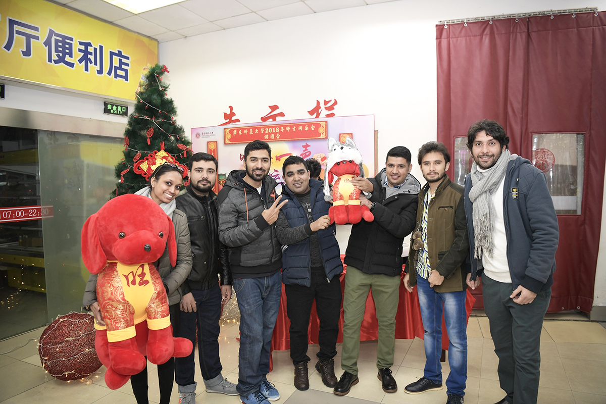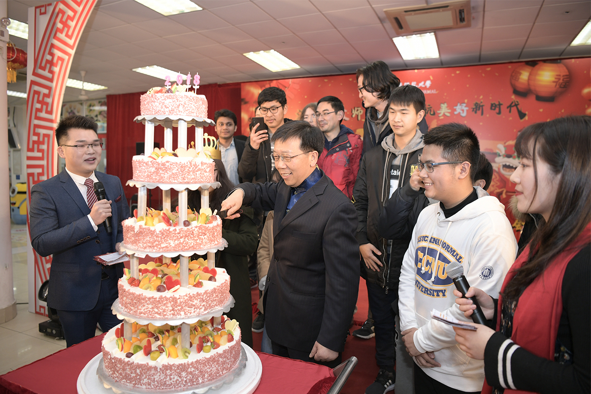 金犬福汪闹春宵,师生同乐幸福到。春节来临之际,师大校园处处洋溢着浓厚的节日氛围。2月9日,我校寒假留校的中外学生和学校领导、教职员工齐聚闵行校区夏雨餐厅。校领导童世骏、钱旭红、方平等与同学们联欢,共迎戊戌新春。