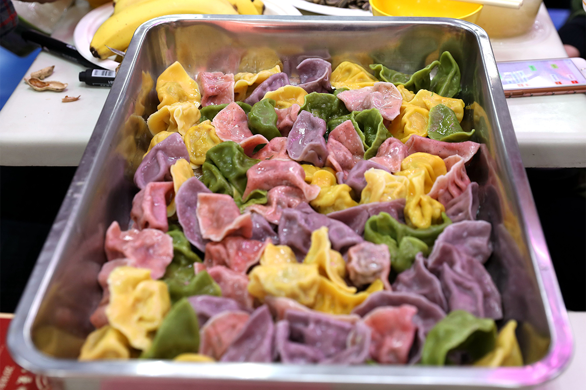 随着后勤员工和志愿者同学们一阵忙碌,热气腾腾的彩虹饺子来到了同学们餐桌,同学们品尝的不仅是舌尖上的美味,更满溢着家的温暖。大家一边吃着饺子,一边和老师同学们有说有笑,夏雨食堂里好不热闹!