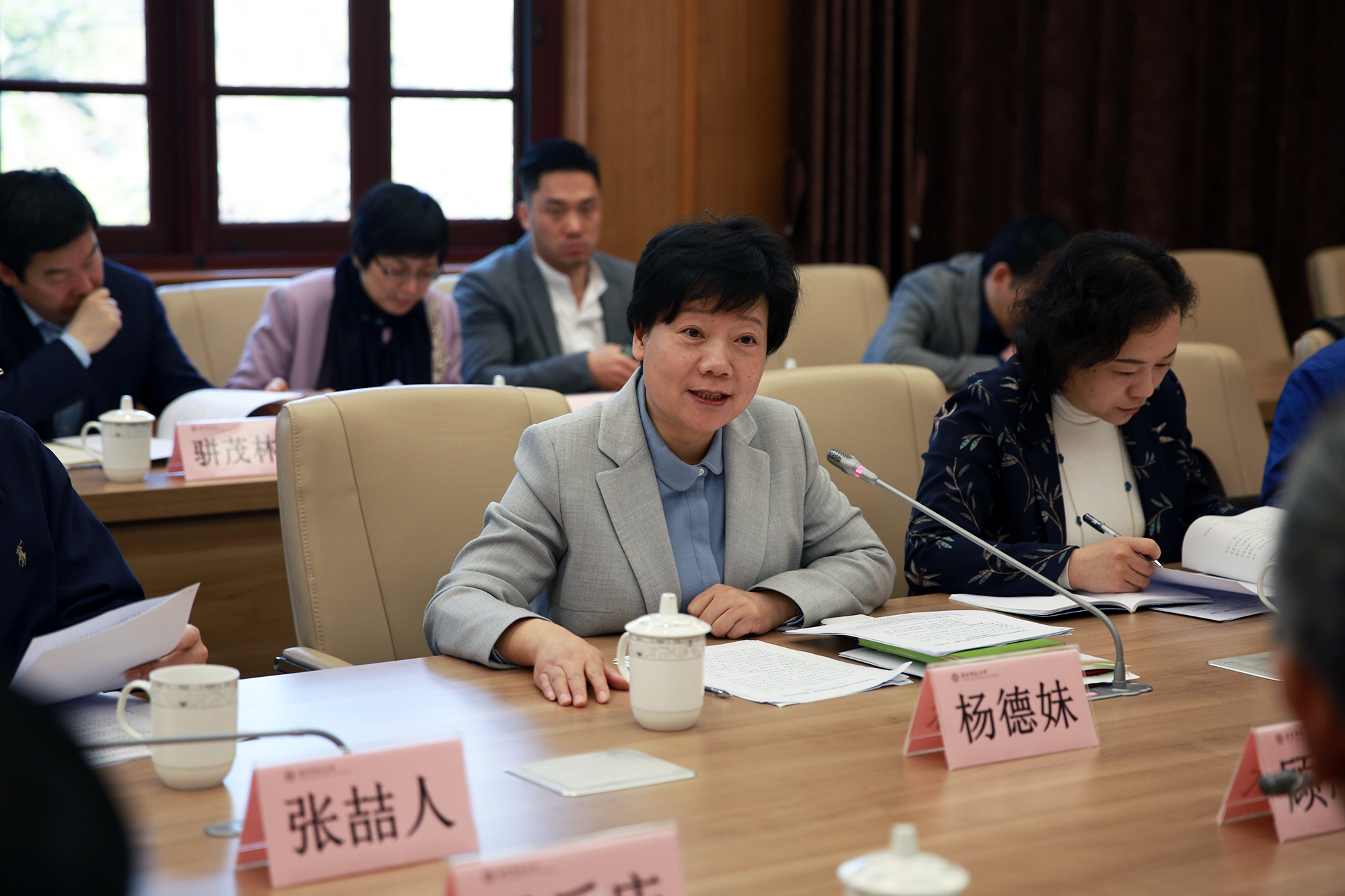 市政协常委、教科文卫体委员会常务副主任、民盟市委副主委、闵行区政府副区长、课题组副组长杨德妹介绍大调研方案