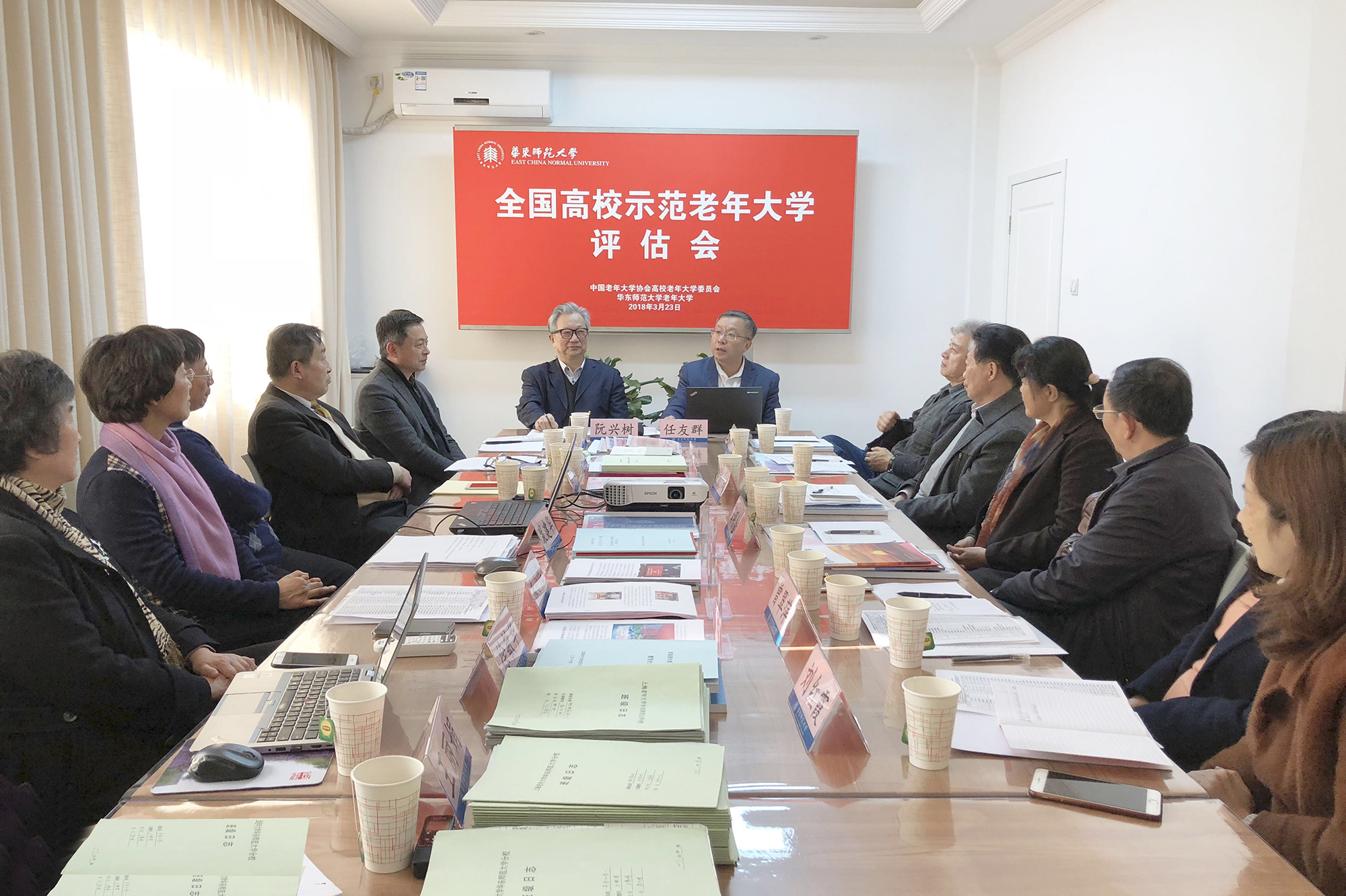 3月23日,由上海师大老年大学校长阮兴树、北京师大老年大学校长王彬带队的中国老年大学协会高校老年大学工作委员会示范校评估专家组来到华东师范大学,对我校老年大学创建“全国高校示范老年大学”的相关工作进行评估检查,评估汇报会在我校老年大学二楼会议室举行。厦门大学老年大学校长陈国凤、西安交大老年大学常务副校长刘斌、湖南大学老年大学常务副校长龚明金、中国老年大学协会高校老年大学工作委员会秘书长缪德良等评估组成员,以及我校党委常务副书记任友群、老龄委办公室主任黄平、老龄委办公室副主任王丽娟、老年大学常务副校长裴建华、老年大学“丽娃读书会”会长朱小怡、老年大学老年教育研究中心秘书长徐敏华等参加汇报会。