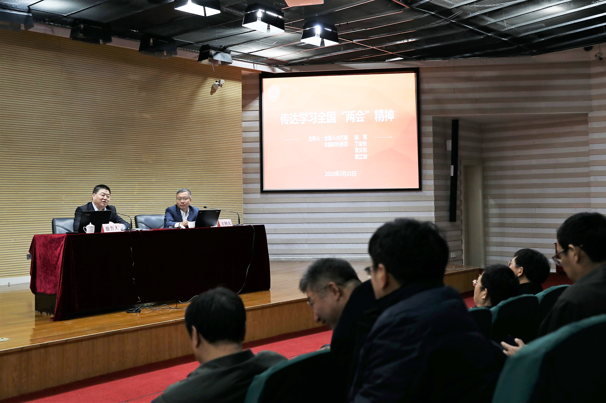 全国人大代表汤亮校友及我校三位全国政协委员戴立益、丁金宏、章义和传达全国“两会”精神