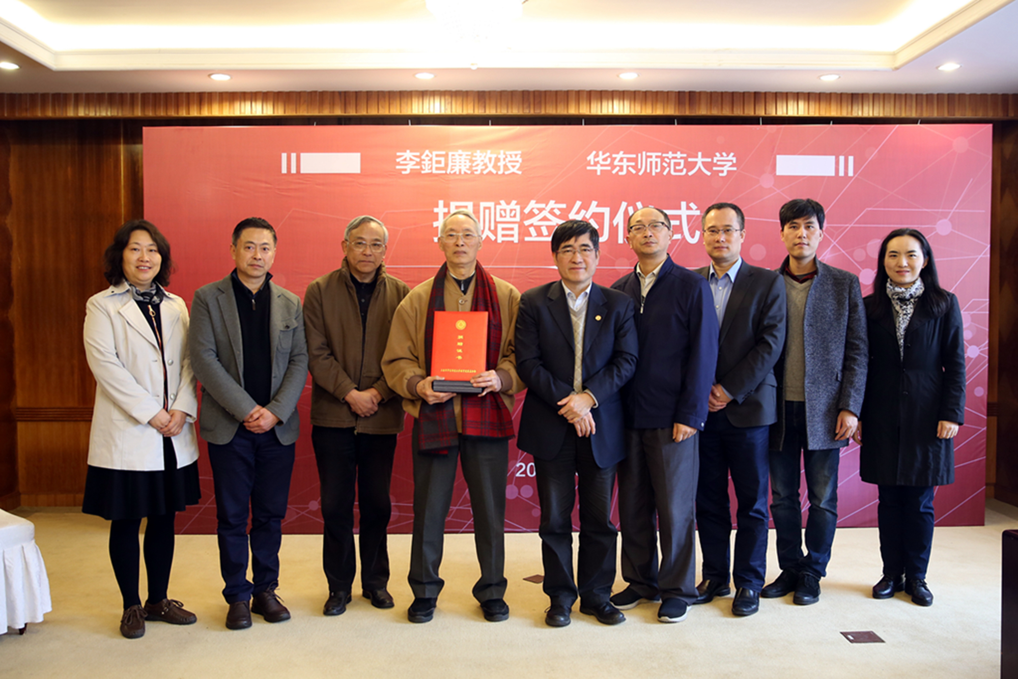 校党委书记童世骏为李鉅廉教授颁发捐赠证书