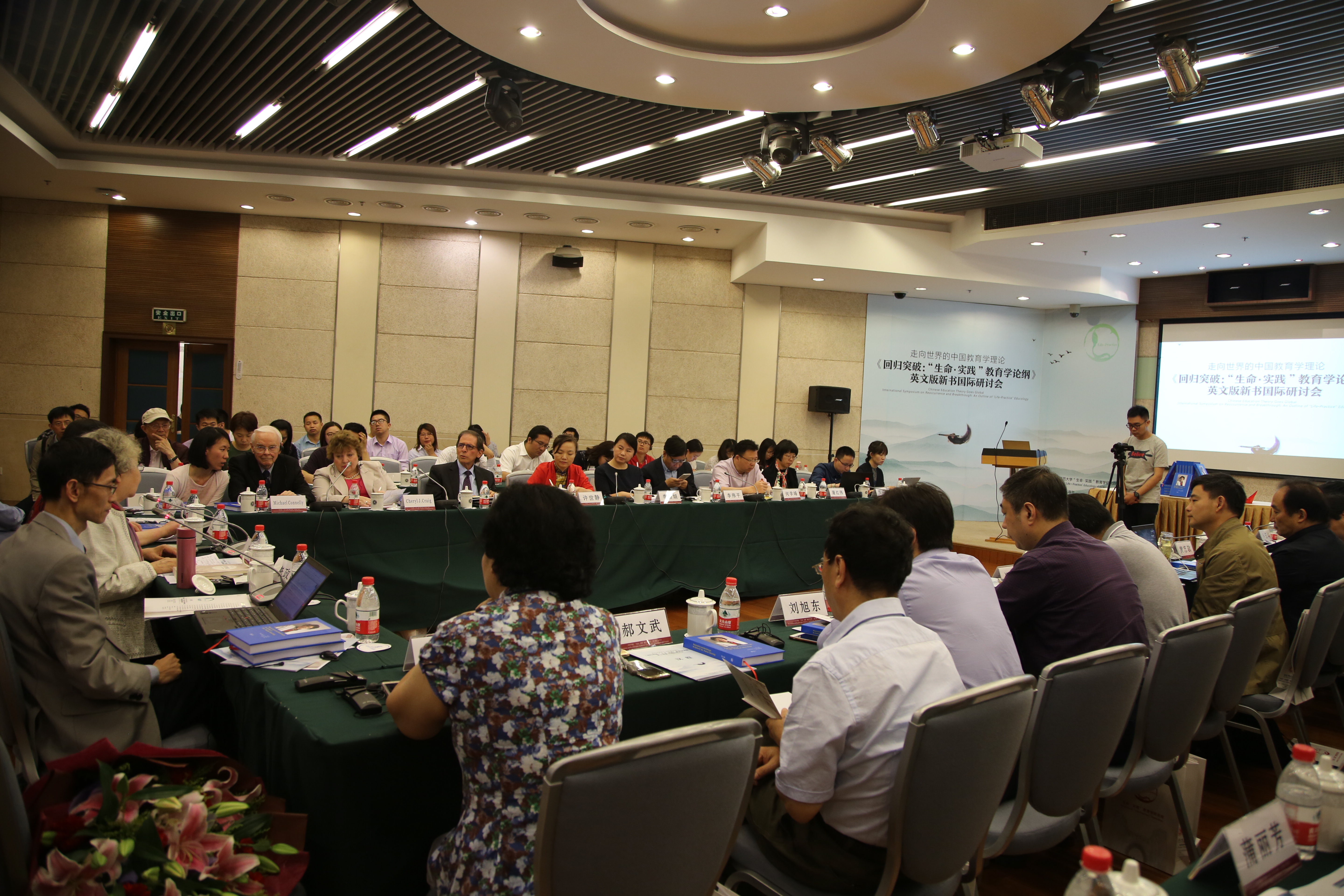 新书发布会后举行了国际学术研讨会。“生命·实践”教育学派创建者叶澜教授首先发言,她向为《回归突破》英文版的启动、组织和完成作出贡献的相关出版发行方以及对关注、支持和出席研讨会的国内外学者同仁表示感谢。随后,她从三个方面简要阐明了“回归突破”的基本内容,向与会者表达了学派建设的学术追求:一是回归民族文化传统,对“教育”作出中国式表达,即“教天地人事,育生命自觉”;二是回归教育学元典,寻找教育学的内核基因“生命·实践”及其带来的独特学科品性;三是回归人类对学科本身的认识,在当代新兴的“综合/复杂”学科中寻找教育学的独立地位。