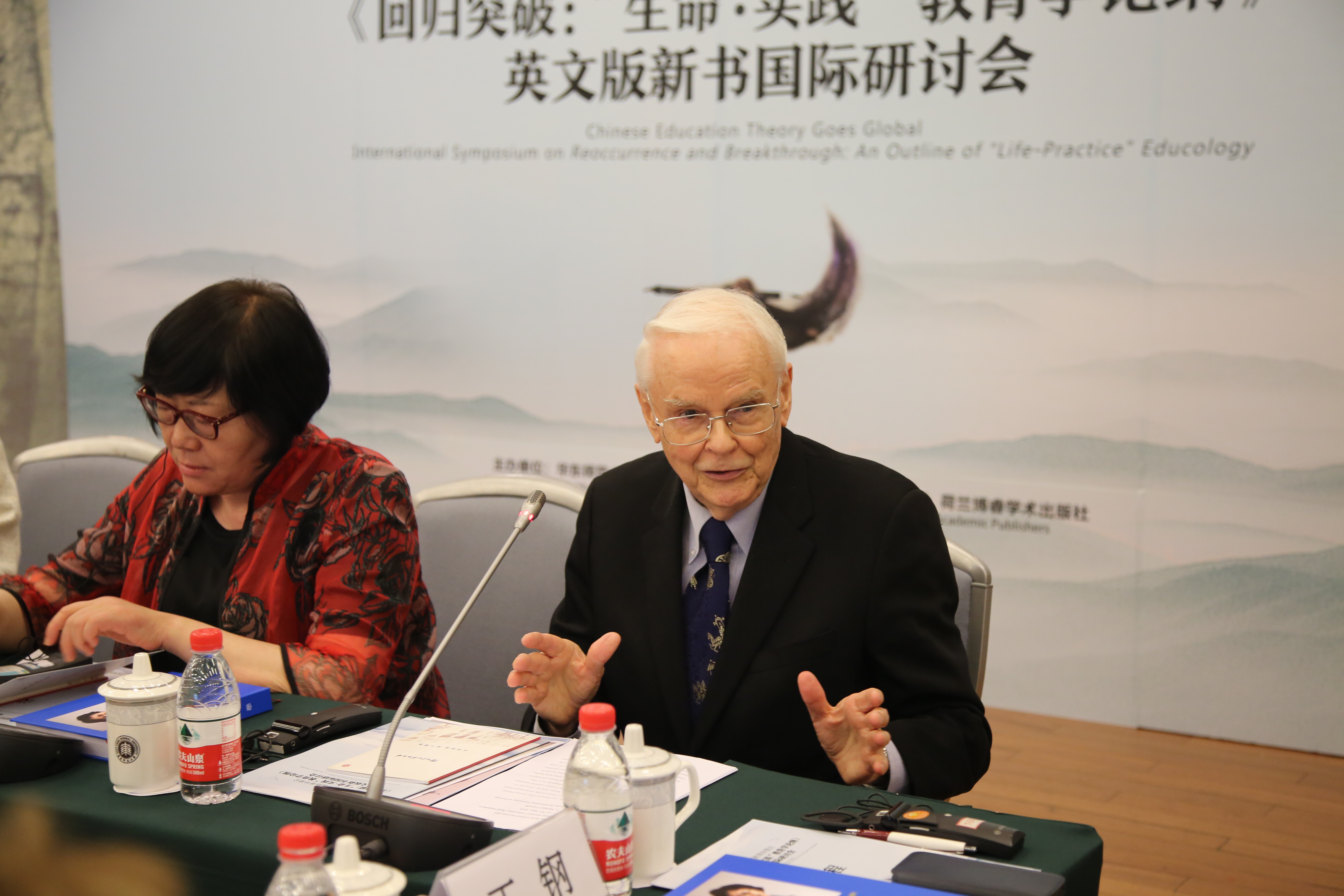 研讨会上,《回归突破》英文版序言作者、加拿大多伦多大学康纳利教授(Michael Connelly),英文版译者、香港教育大学李丽娟博士和“荷兰博睿与中国教育家书系”主编白杰瑞教授等先后发言。康纳利教授结合自己与叶澜教授及其开创的“新基础教育”研究学校变革十多年的交往,提出《回归突破》以独特的视角解读了西方思想,而且有所突破,它表达了对西方思想的尊重和理解,同时明确了中国教育思想必须保持独立,体现中国文化的独特,从叶澜教授的独特视角解读叶澜教授的著作及其背后独特的中国文化、哲学和教育思想,有助于跨文化国际交流走向更深、更广、更远。李丽娟博士结合《回归突破》一书三年艰辛和不断改善的翻译历程,表达了该书独特表达方式和深厚学术内容所带来的独特生命经历,以及中国思想不再只是依从西方话语,走出国门进行国际交流的自豪。白杰瑞教授认为得时代先风、扎根学校教育实践、关注师生生命发展的中国教育理论,将打破中国研究文献被引在国际上阙如的状况。中国创造需要且能够引起国际重视。