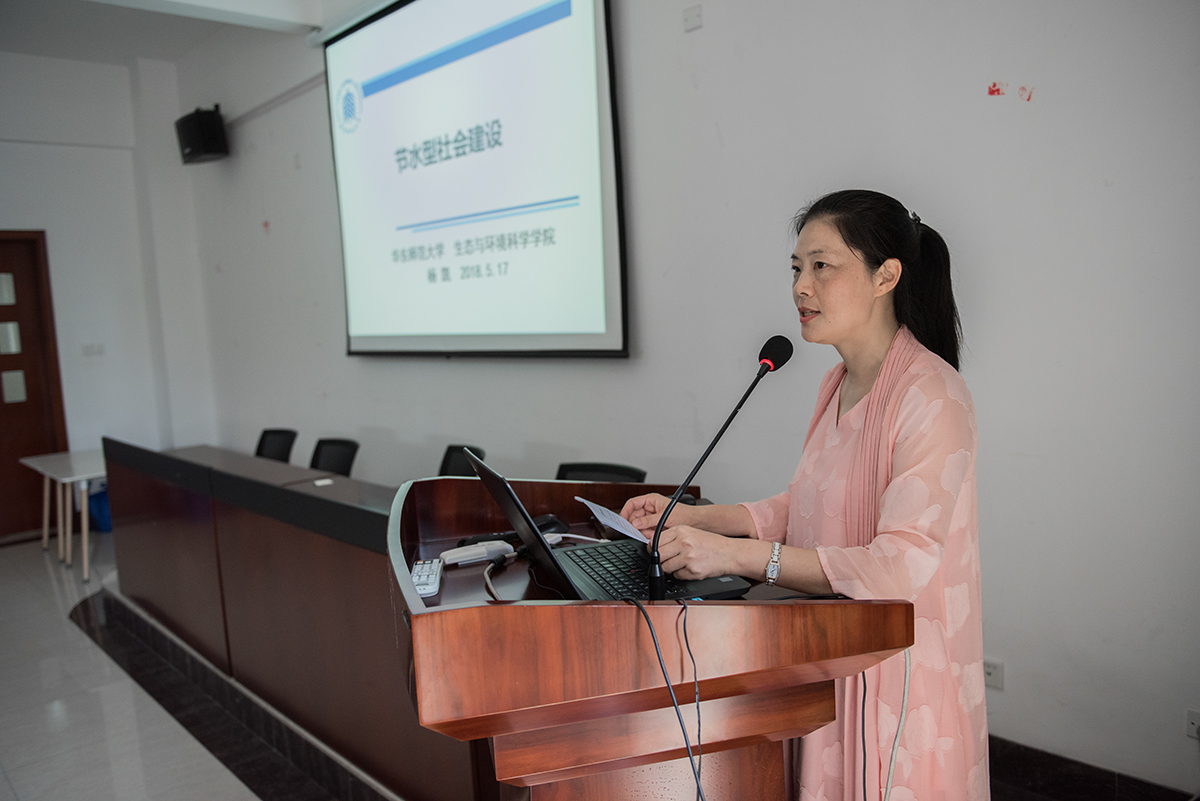 本次活动充分发挥了我校学科优势,下午转场到生态与环境科学学院开展节水专场讲座和研讨。生态与环境科学学院杨凯教授作《上海市水环境治理与海绵城市建设》专题讲座;上海市水务局对节水型学校创建相关法规和标准进行了宣贯,就学校节水案例进行分享。期间,后勤党工委书记党远鸿和生态与环境科学学院党委书记刘婕进行了节水宣传教育活动的动员讲话。