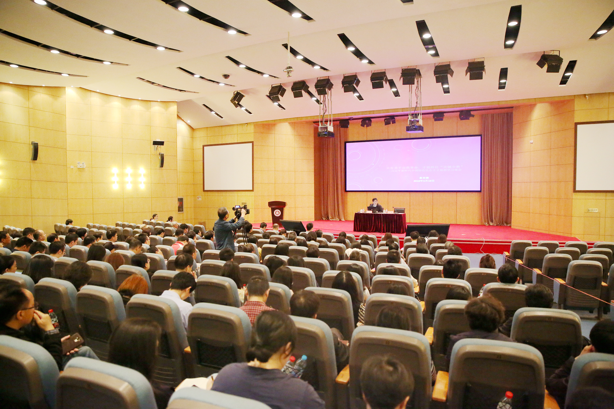 5月10日,我校中层干部学习习近平新时代中国特色社会主义思想专题报告会在两校区同时举行,校党委书记童世骏作题为“只有勇于自我革命,才能胜任‘关键少数’”的主题报告。全校中层干部、特邀党建组织员、教职工党支部书记在中山北路校区科学会堂主会场和闵行校区视频分会场聆听了报告。报告由校党委常委、组织部部长程静主持。