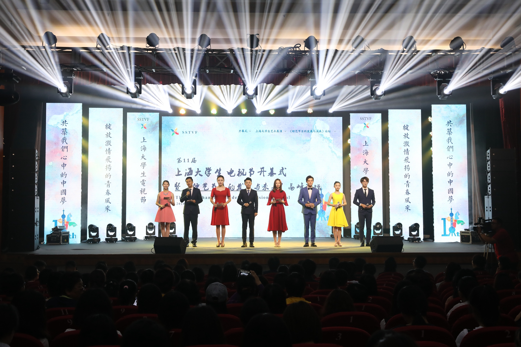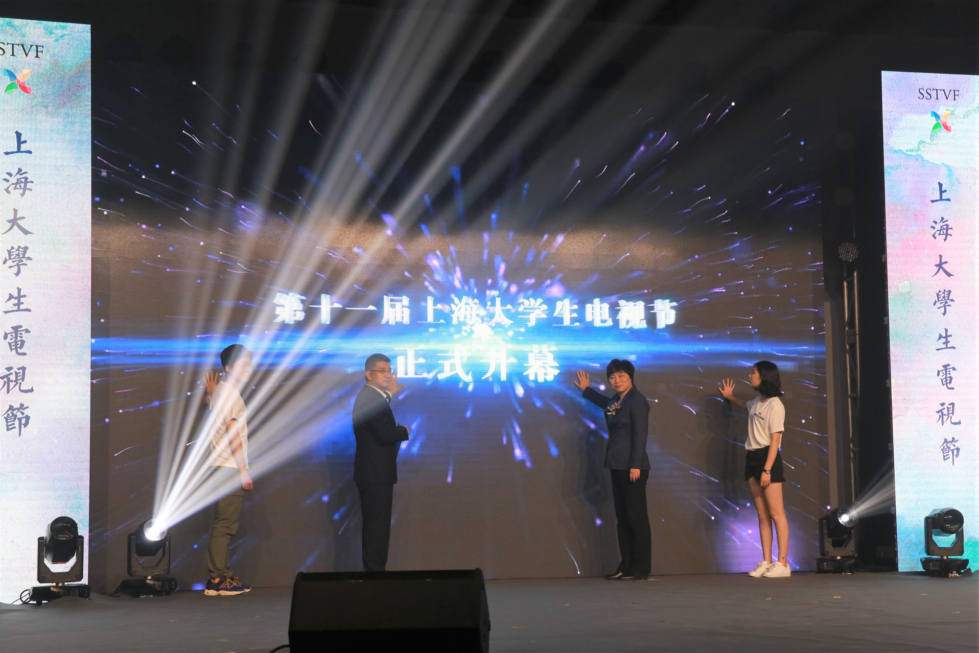 杨昌利、俞振伟以及来自主办高校的学生代表高义峰、祝烟雯共同按下大屏幕的启动按钮,第十一届上海大学生电视节正式拉开帷幕。