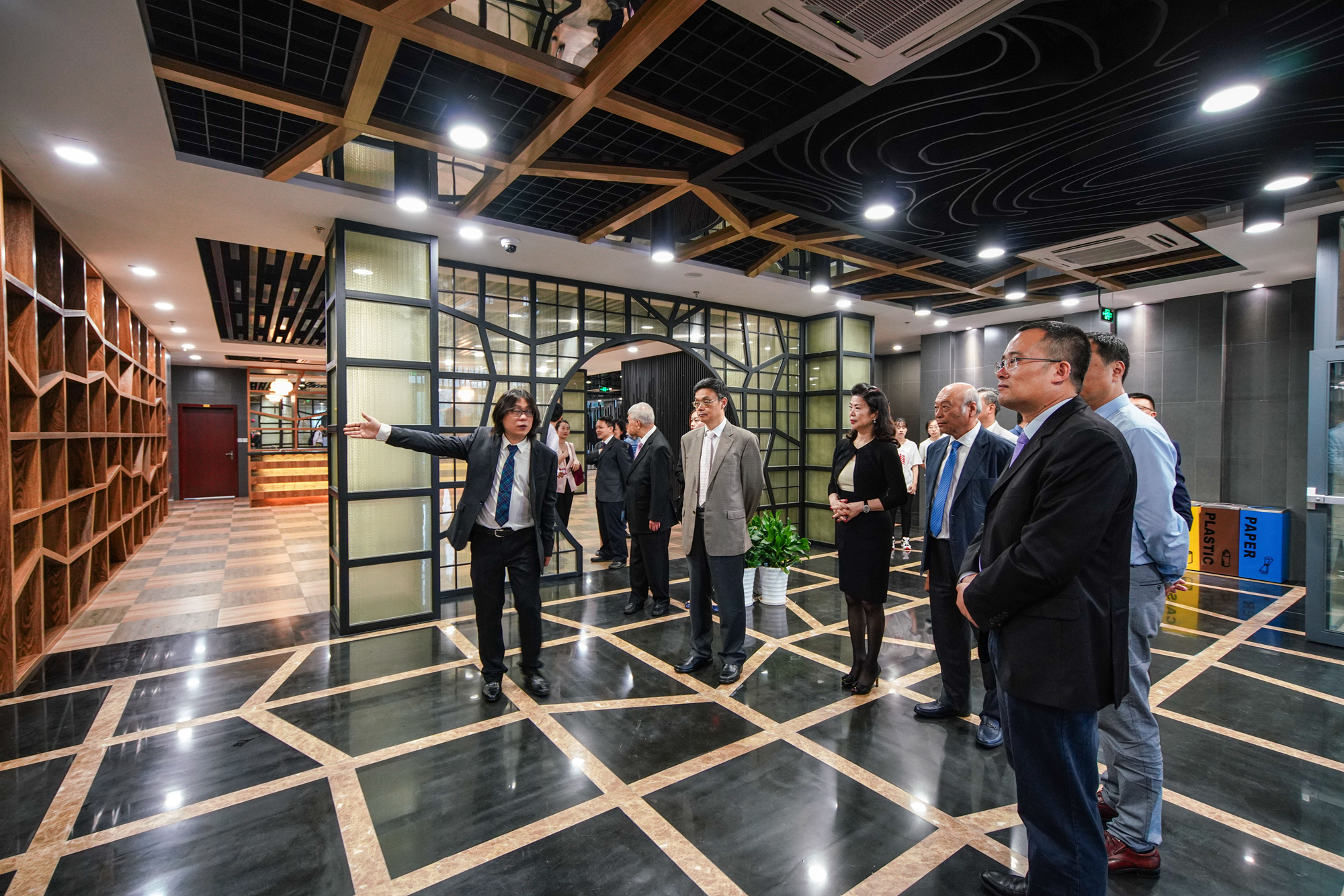 在设计师朱杰军副教授的介绍下,黄玲玲一行参观黄玲玲楼
