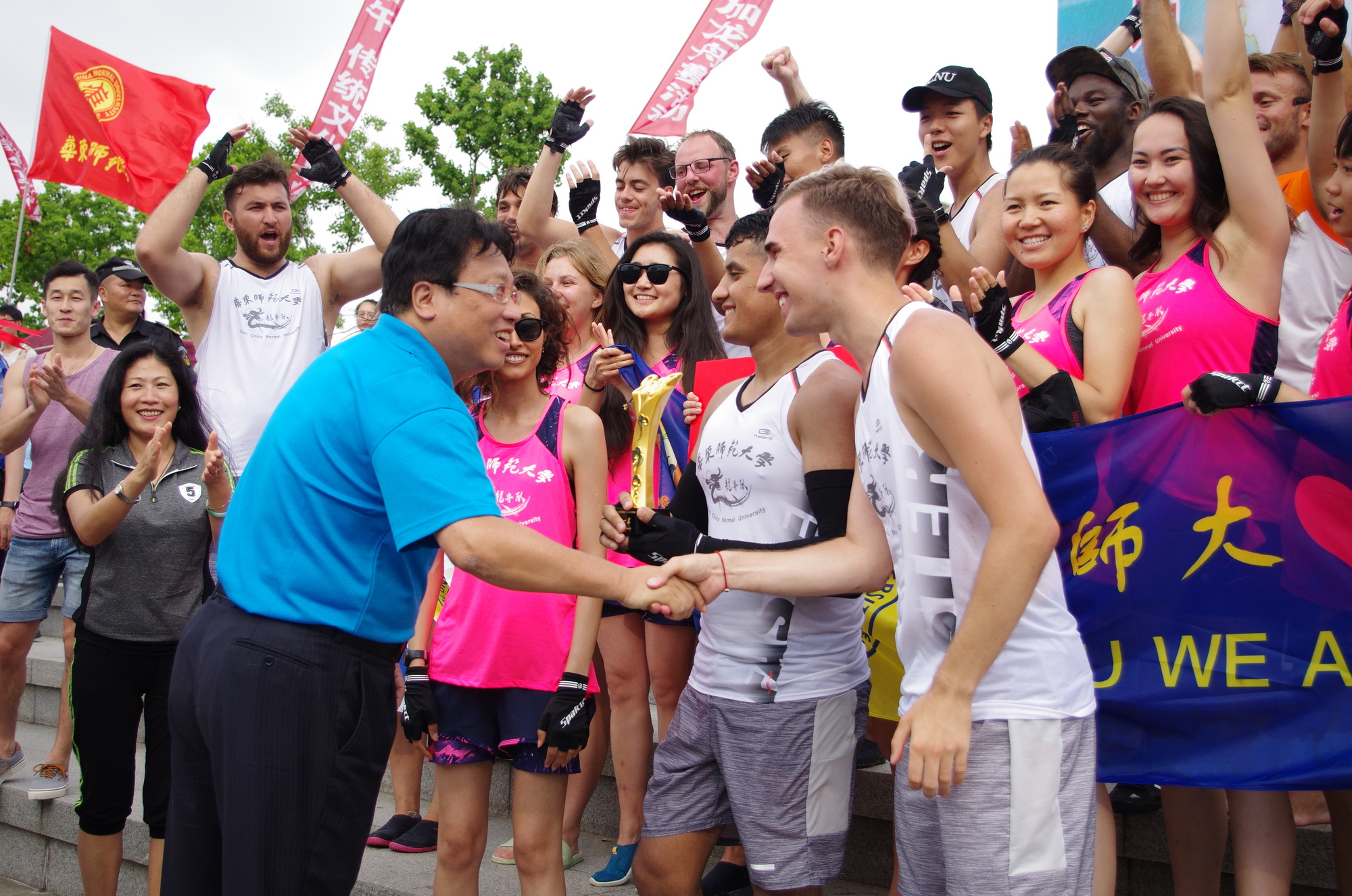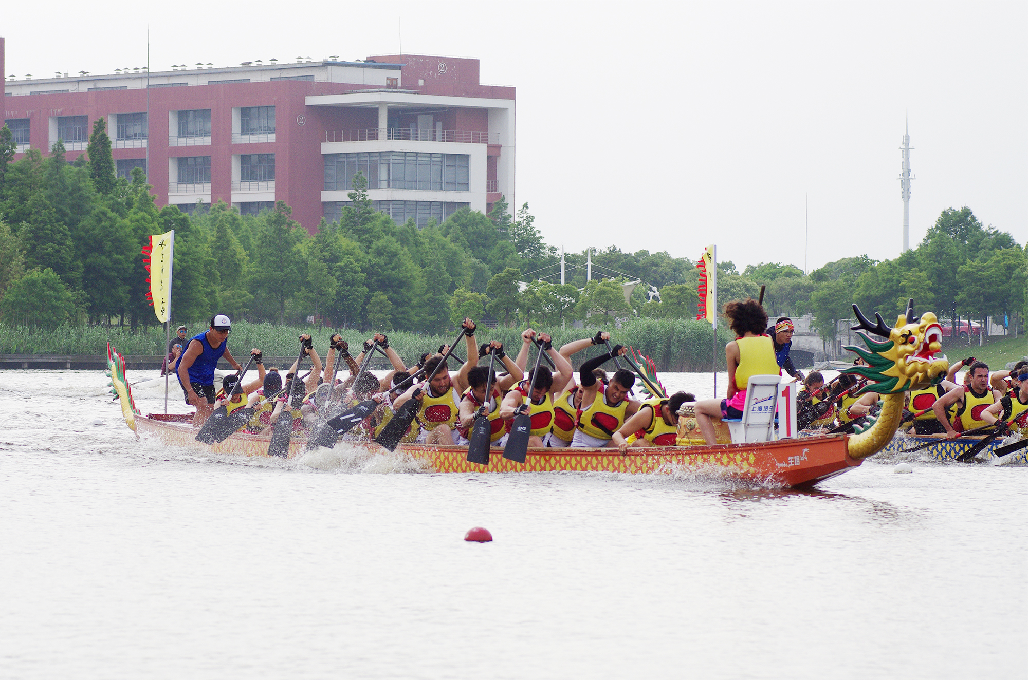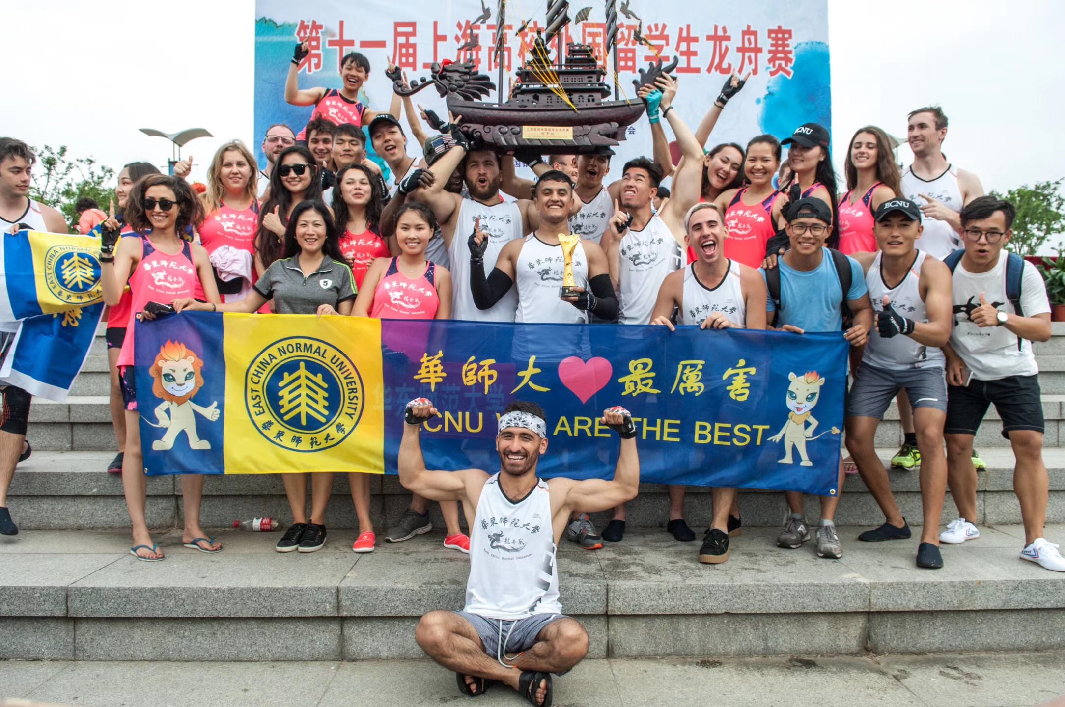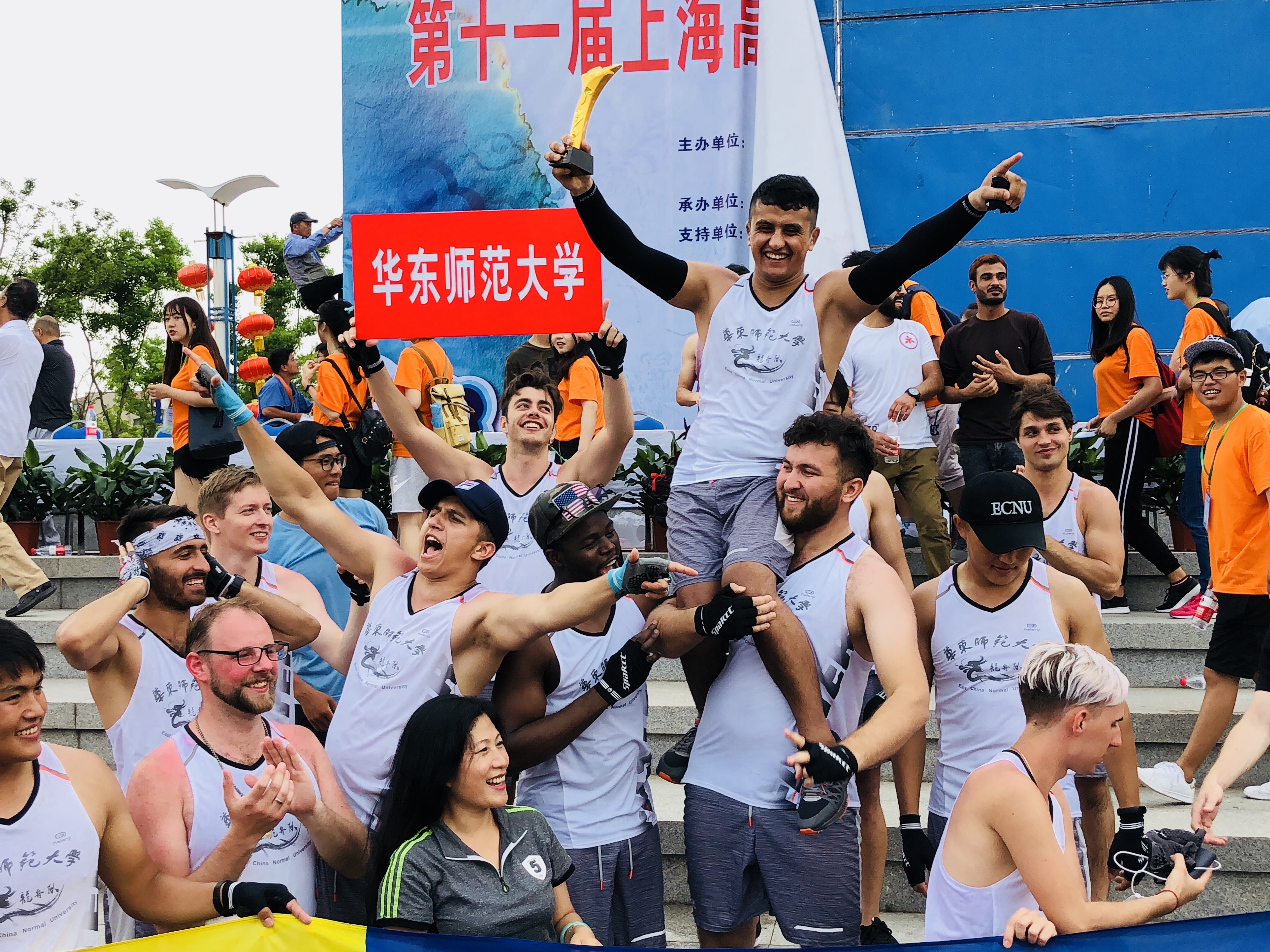 我校留学生代表队连续三年卫冕上海高校外国留学生龙舟赛冠军