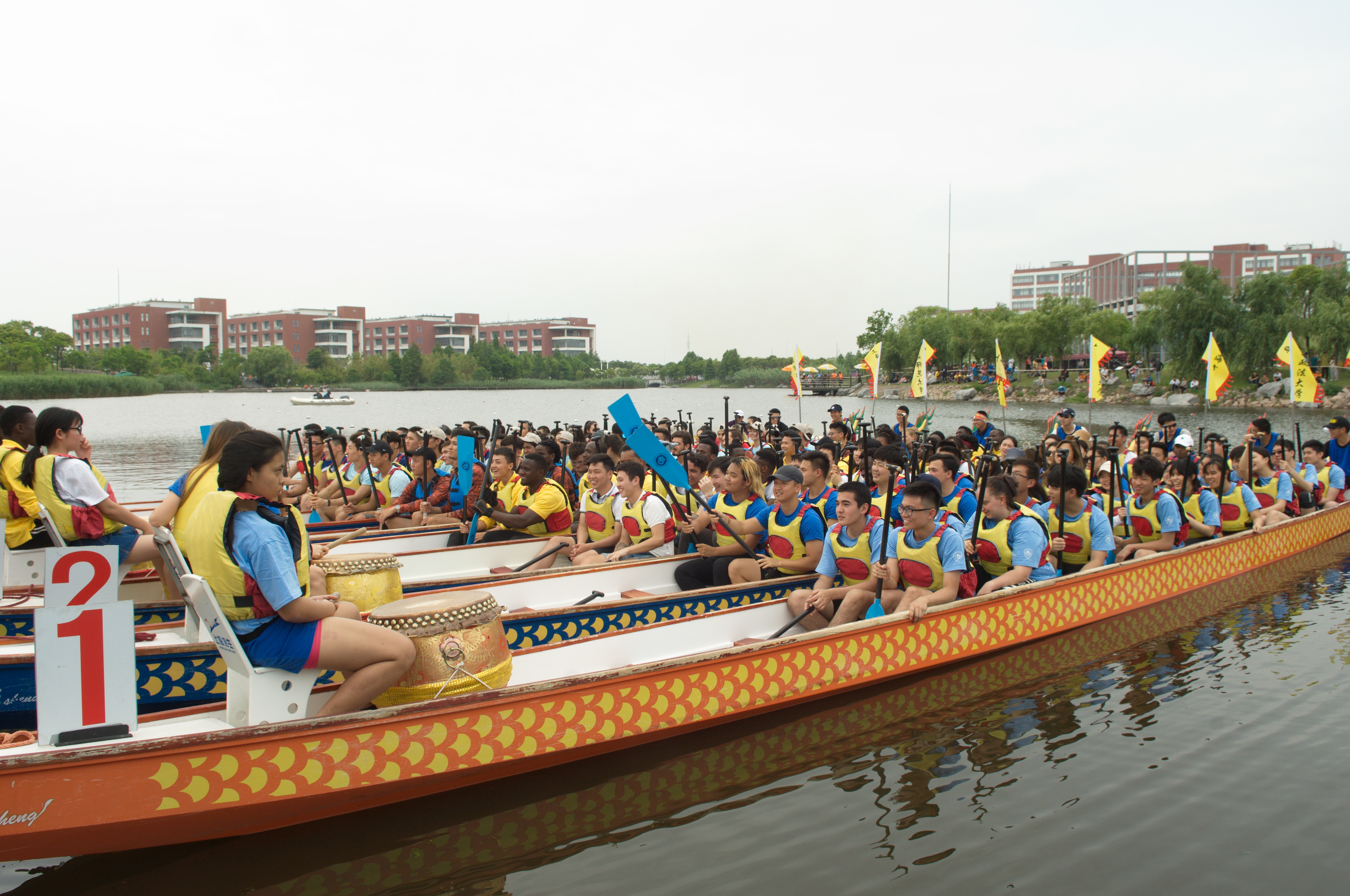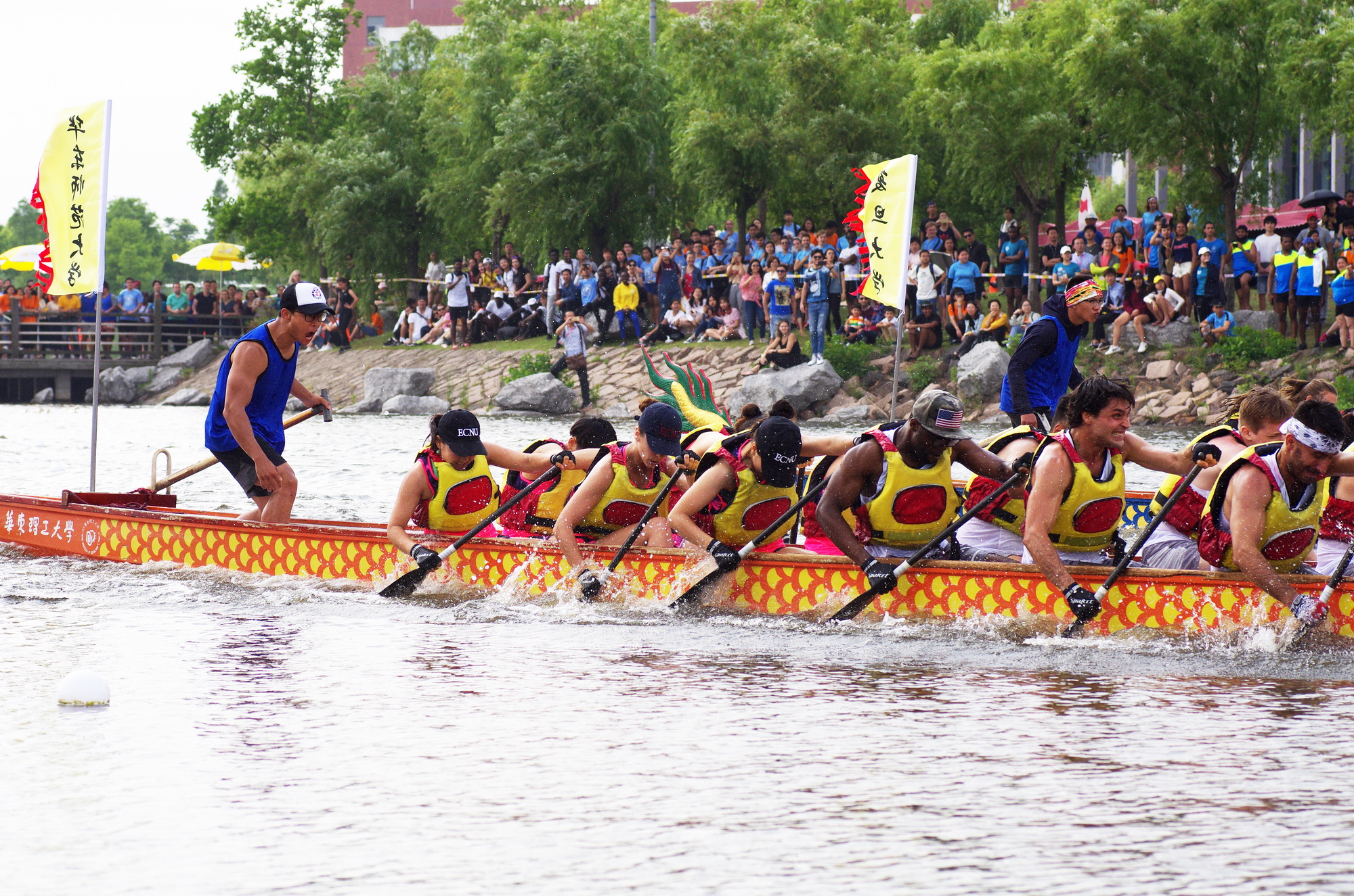 6月9日,第十一届上海高校外国留学生龙舟赛在华东理工大学奉贤校区举行,我校留学生龙舟队强势夺冠,继2016年、2017年之后又一次夺取上海高校外国留学生龙舟赛总成绩冠军,实现三连冠。在第一轮的预赛中,我校代表队以52秒86的成绩列位第一,轻松晋级决赛。在第二轮决赛中,在比赛更为激烈、对手更为强劲的情况下,我校代表队依旧沉着应战,一路冲向终点。经过激烈角逐,我校代表队最终以53秒53的好成绩,连续三年蝉联冠军。复旦大学代表队、上海海事大学代表队获二等奖;东华大学代表队、上海交通大学代表队、华东理工大学代表队获得三等奖。