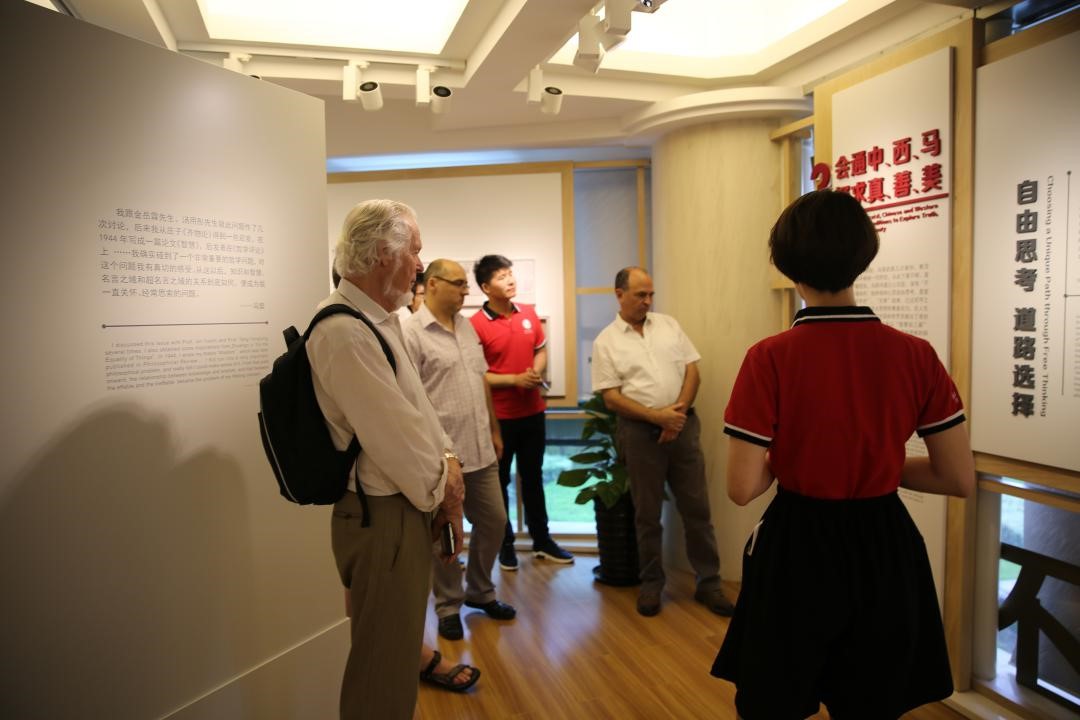 专家们首先参观了冯契学术成就陈列室。哲学系李欣颖、余涛、姚远、谢晨云、郑鹤杨、王灿等同学进行英文讲解,和与会专家们一起,重温了冯契先生的一生和他所经历的那段上个世纪中华民族和世界格局的大变迁,深入了解了冯先生是如何毫无畏惧地担当起了历史使命并且出色地完成了与世界哲学对话的任务的人生历程和冯先生集毕生之力所创建的智慧学说的理论体系。各国专家们都全神贯注地聆听讲解并不时拍照留念,并在纪念册上写下了自己的感想和对华东师范大学哲学系的衷心祝贺与殷切期盼。