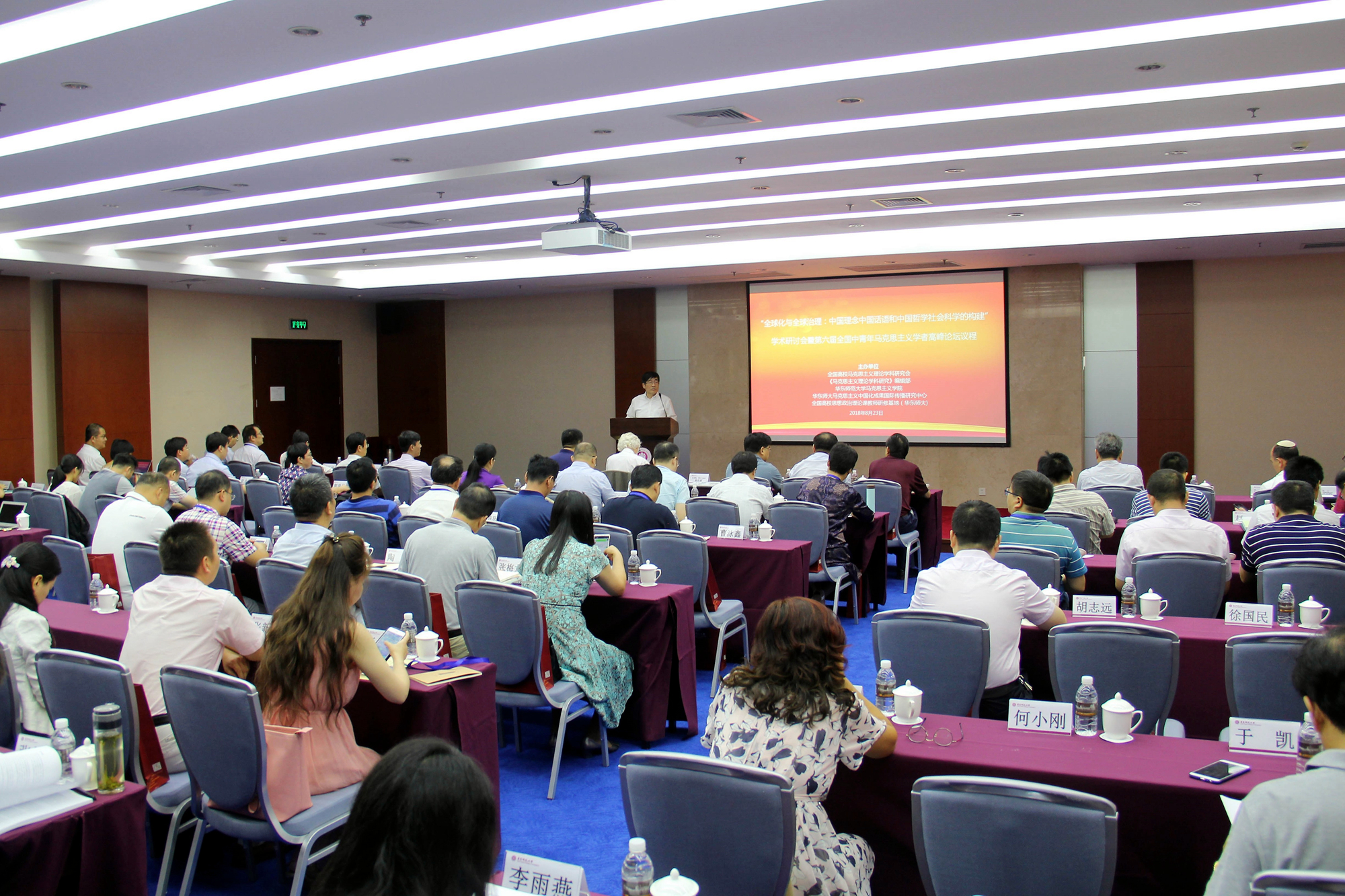 为进一步深入学习研究习近平新时代中国特色社会主义思想,加强马克思主义学科建设,8月23日,由全国高校马克思主义理论学科研究会、《马克思主义理论学科研究》编辑部、我校马克思主义学院等联合主办,在《毛泽东邓小平理论研究》《思想理论教育》《学校党建与思想教育》《学术界》《学术论坛》《思想政治课研究》等学术刊物的支持下,“第六届全国中青年马克思主义学者高峰论坛”在我校闵行校区召开。本次论坛以“全球化与全球治理:中国理念·中国话语和中国哲学社会科学的构建”为主题,挪威科学院院士Gunnar Skirbekk教授、丹麦奥胡斯大学Asger Sørensen 教授、捷克科学院的Marek Hrubec 教授,以色列巴伊兰大学Hanoch Ben Pazi教授,和来自国内40余所高校以及《马克思主义理论学科研究》等知名期刊的中青年专家学者共100余人参加了会议。论坛开幕式由我校宣传部部长兼马克思主义学院院长顾红亮教授主持。