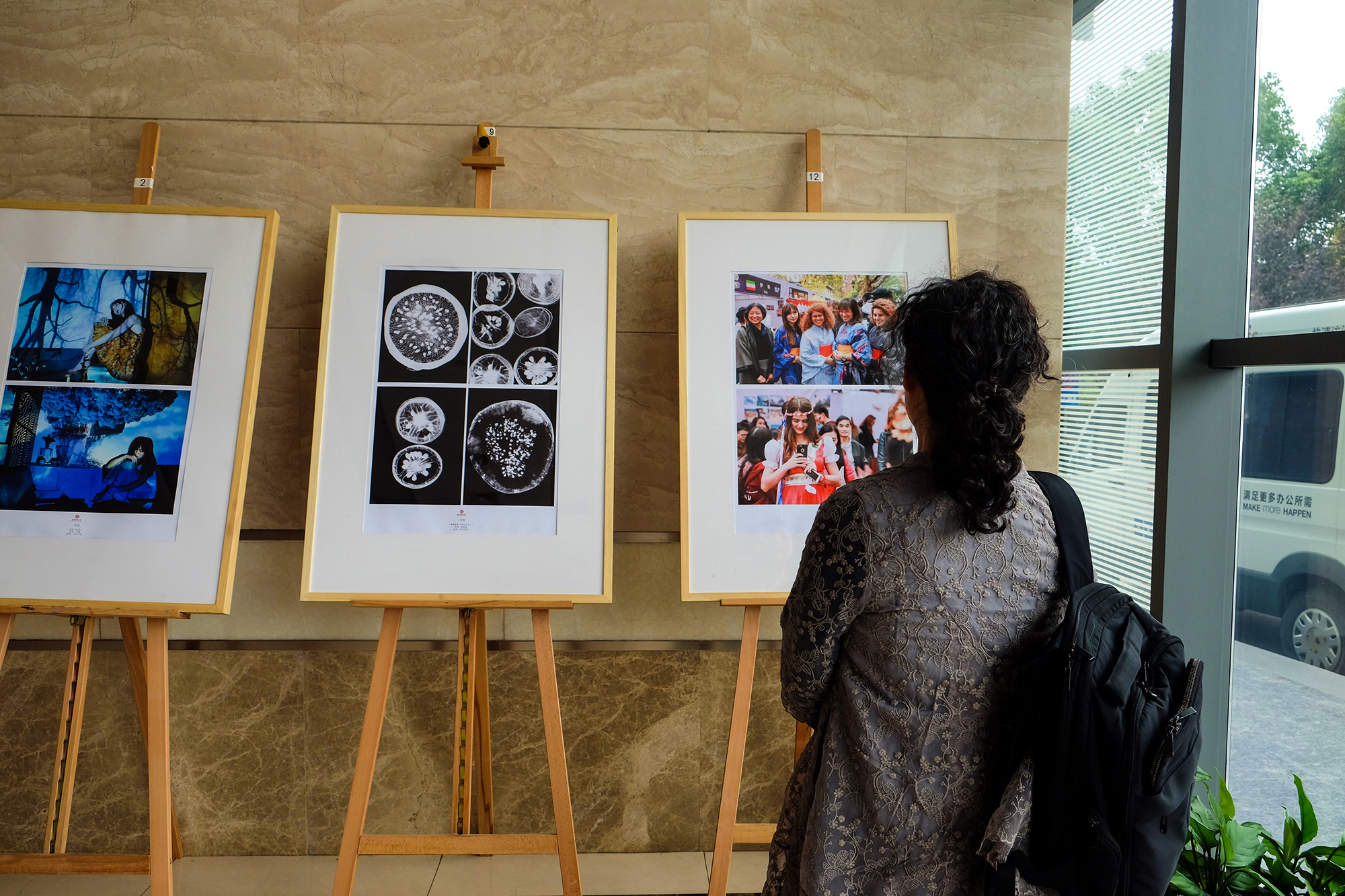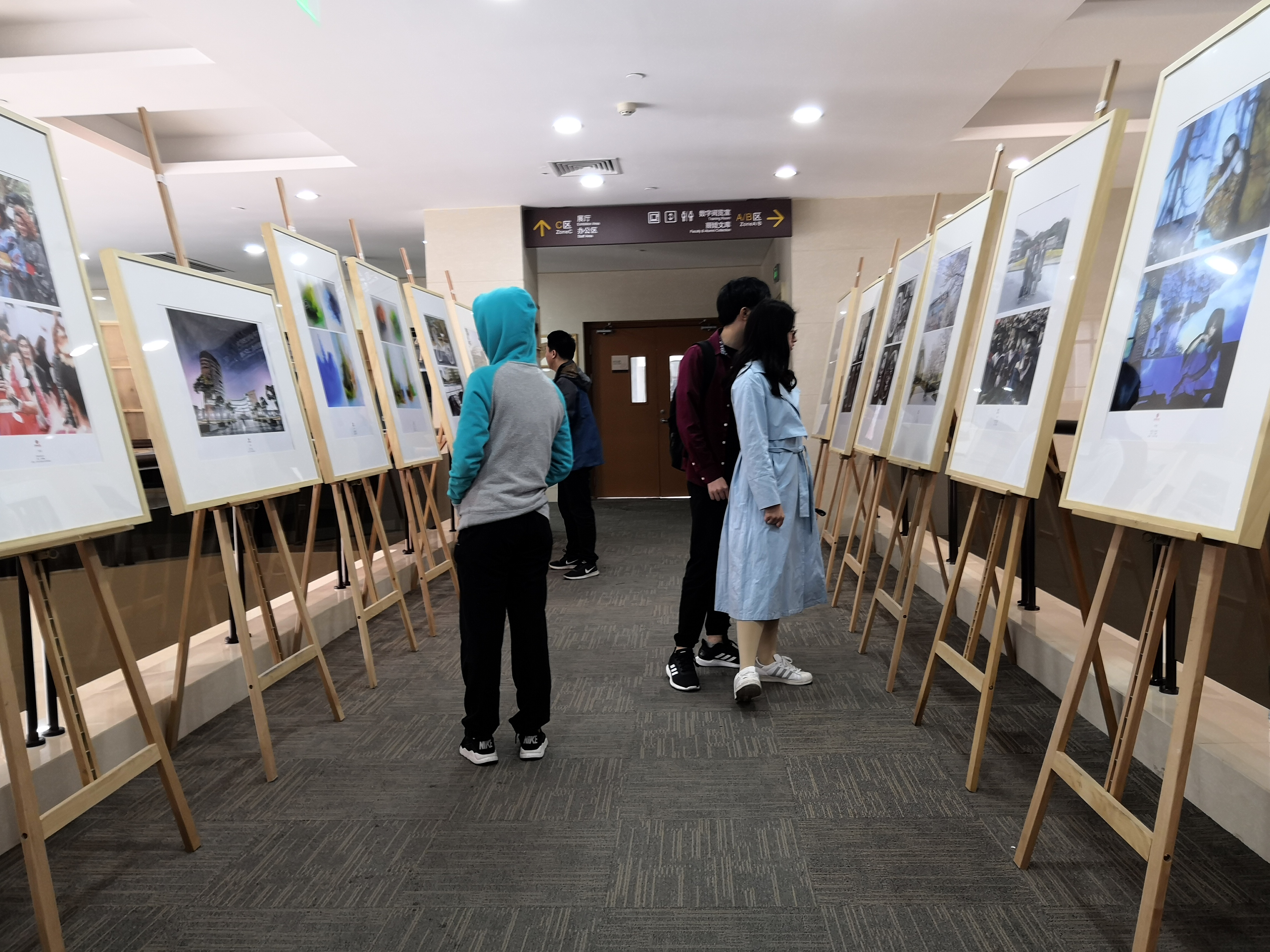 第三届“我爱师大”获奖摄影作品闵行校区办公楼展览现场