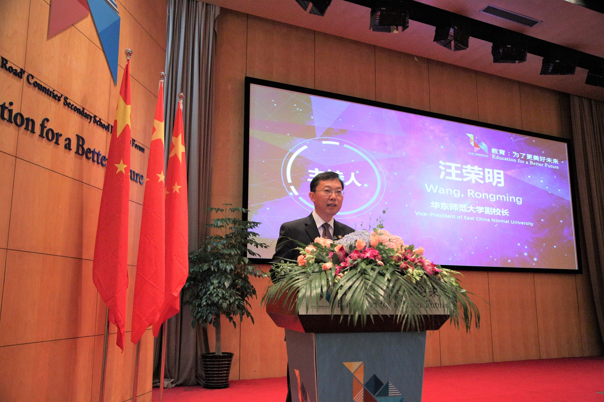 开幕式上,童世骏谈到,2018年10月16日是我校成立67周年校庆日,在这个特别的日子里,“一带一路”沿线国家中学校长论坛在校开幕,全校师生深感幸福。来自亚非拉国家,以及荷兰、澳大利亚、英国等国心系教育发展、服务教育事业的同仁,不远万里、不辞辛苦,是因为怀着共同的理想追求:通过教育事业为人类创造更加美好的未来。他强调,我校依托教育部中学校长培训中心举办这次论坛,希望能够搭建平台,交流分享成功经验、凝聚提炼先进思想,以期能解决更多教育领域特别是基础教育领域的难题。