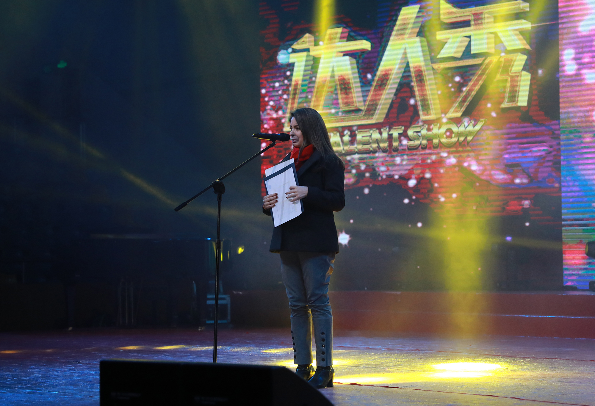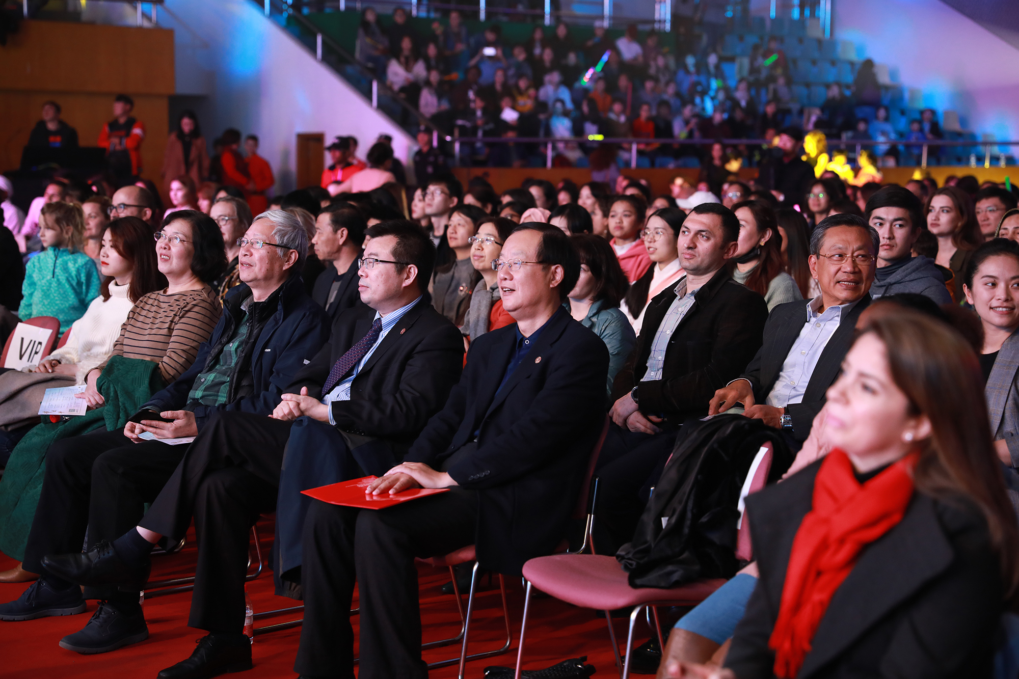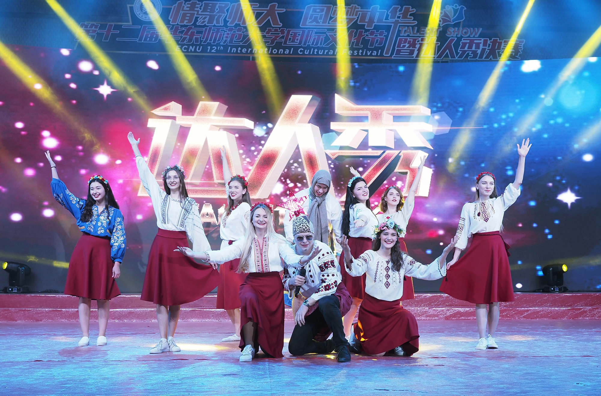 11月29日晚,我校第十二届国际文化节闭幕式暨达人秀晚会在中山北路校区体育馆举行。我校副校长李志斌、孙真荣,保加利亚、俄罗斯、哥伦比亚、意大利、乌克兰、比利时、芬兰、埃塞俄比亚等国驻上海总领事馆的外交官们出席了本次活动。