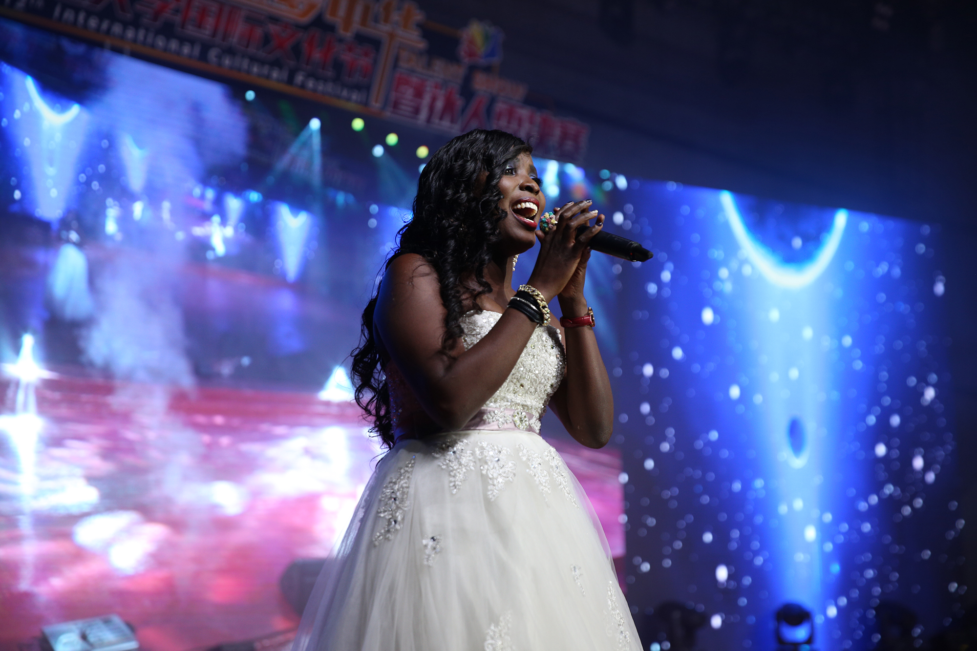 留学生中藏龙卧虎,不乏诸多唱跳达人。多国学生带来的嘻哈说唱和B-BOX嗨翻全场;蒙古同学们的《灯光舞》视觉效果炫酷;尼泊尔学生们用吉他、笛子等传统乐器带来一曲《无尽的爱》;由国际教育中心老师和留学生们共同演奏的《Seasons》,温婉柔美、中西合璧,别有一番风韵。由我校合作机构美国国际教育交流协会CIEE的同学们表演的中国绝技《变脸》也赢得掌声连连。值得一提的是,我校校友,来自阿根廷的歌手安达作为表演嘉宾,为大家带来了充满拉丁风情的歌曲。最后一个参赛节目是来自乌干达同学演唱的《I Will Always Love You》,观众们对她磁性和富有感染力的嗓音报以热烈的掌声和欢呼。现场沉浸在一片青春、激情、动感、欢乐的氛围中。