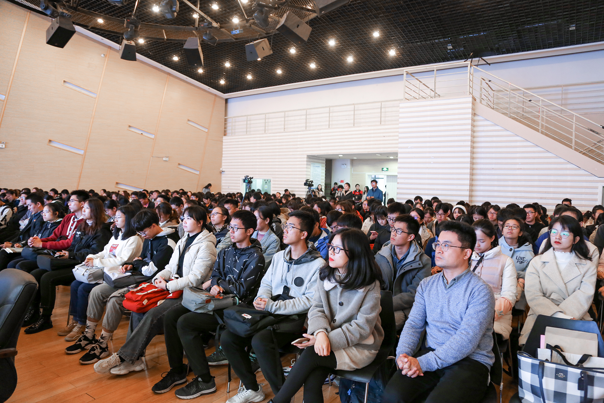 14:00还不到,华东师大闵行校区的学生之家C区多功能厅已座无虚席,挤满了前来聆听“大飞机文化进校园”思政公开课的学生。