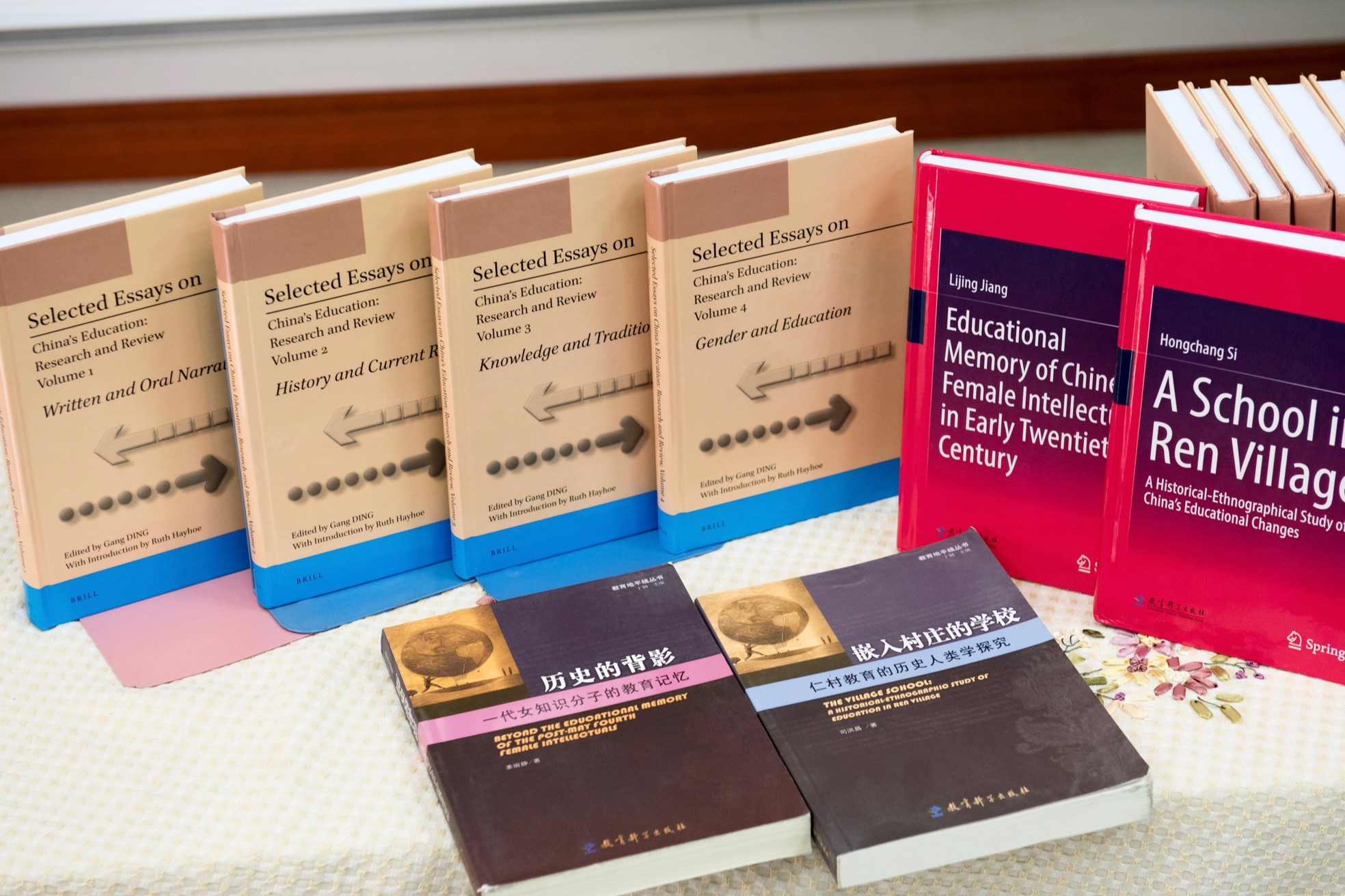 11月21日上午,由华东师大教育高等研究院举办的第六届“教育文化与社会发展”学术论坛之“教育文化研究的跨学科领域”学术外译成果发布会在校举行。由教育科学出版社输出版权、荷兰博睿学术出版社(Brill)和德国斯普林格出版集团(Springer)分别以英文出版的《中国教育:研究与评论(四卷本)》《嵌入村庄的学校:仁村教育的历史人类学探究》《历史的背影:一代女知识分子的教育记忆》在会上与公众见面。