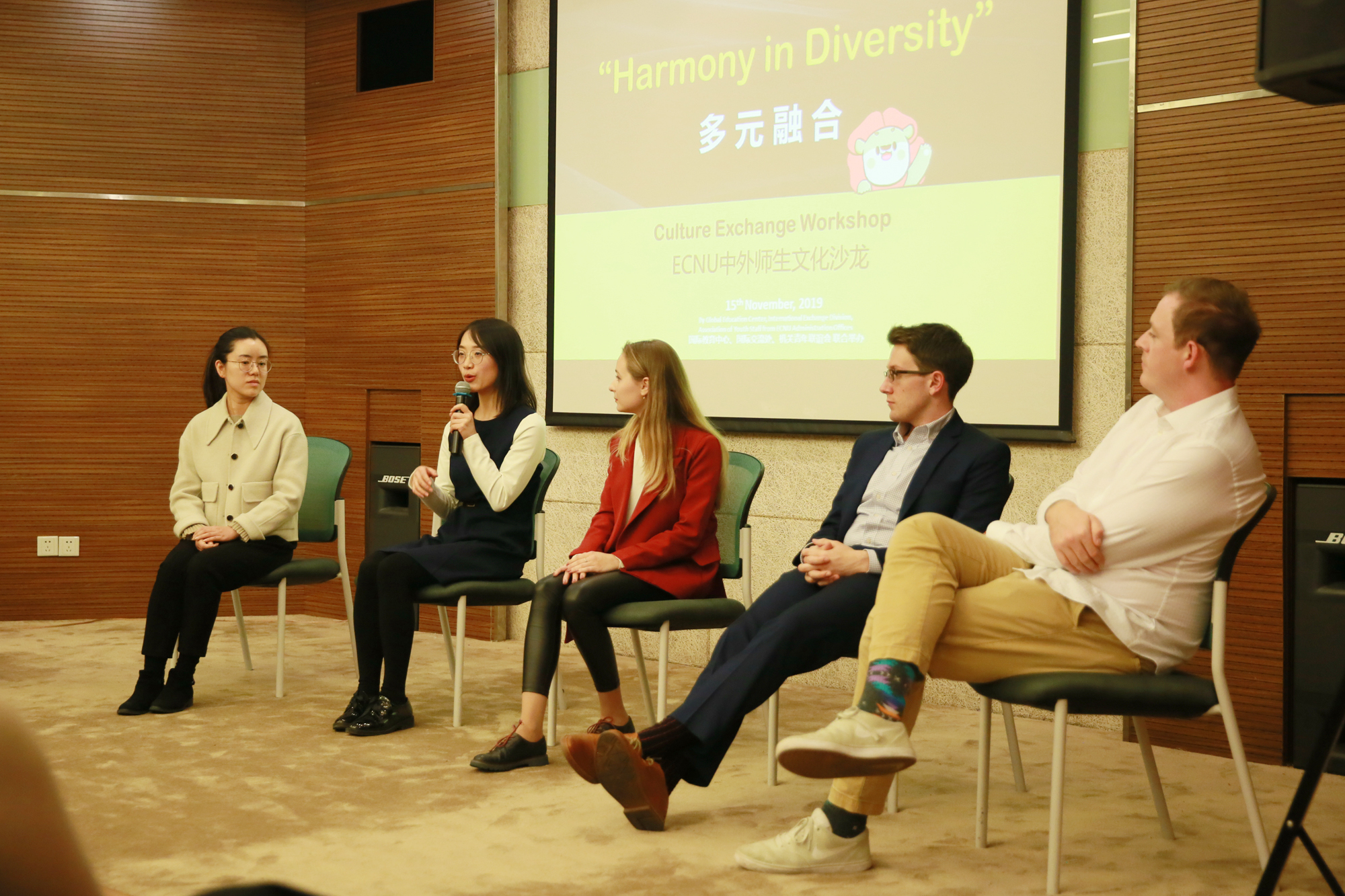 11月15日下午,由国际教育中心、国际交流处、机关青年联谊会联合举办的“多元融合”华东师大中外师生文化沙龙在中山北路校区逸夫楼多功能厅举行。机关党工委书记王淑仙,国际教育中心主任、国际汉语文化学院党委书记黄美旭,国际交流处副处长王素斌,宣传部副部长、海外宣传办公室主任刘金玉,机关青年联谊会会长孙一出席本次活动。