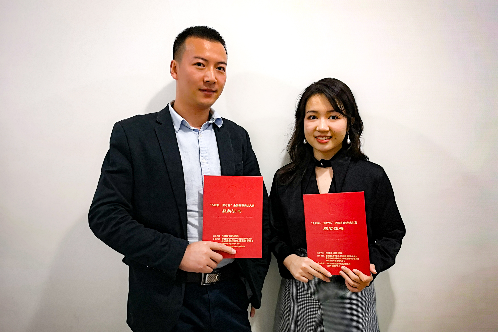 王越老师(右)指导的学生赵隽元(左)获2018“外研社·国才杯”全国写作大赛一等奖和上海赛区特等奖