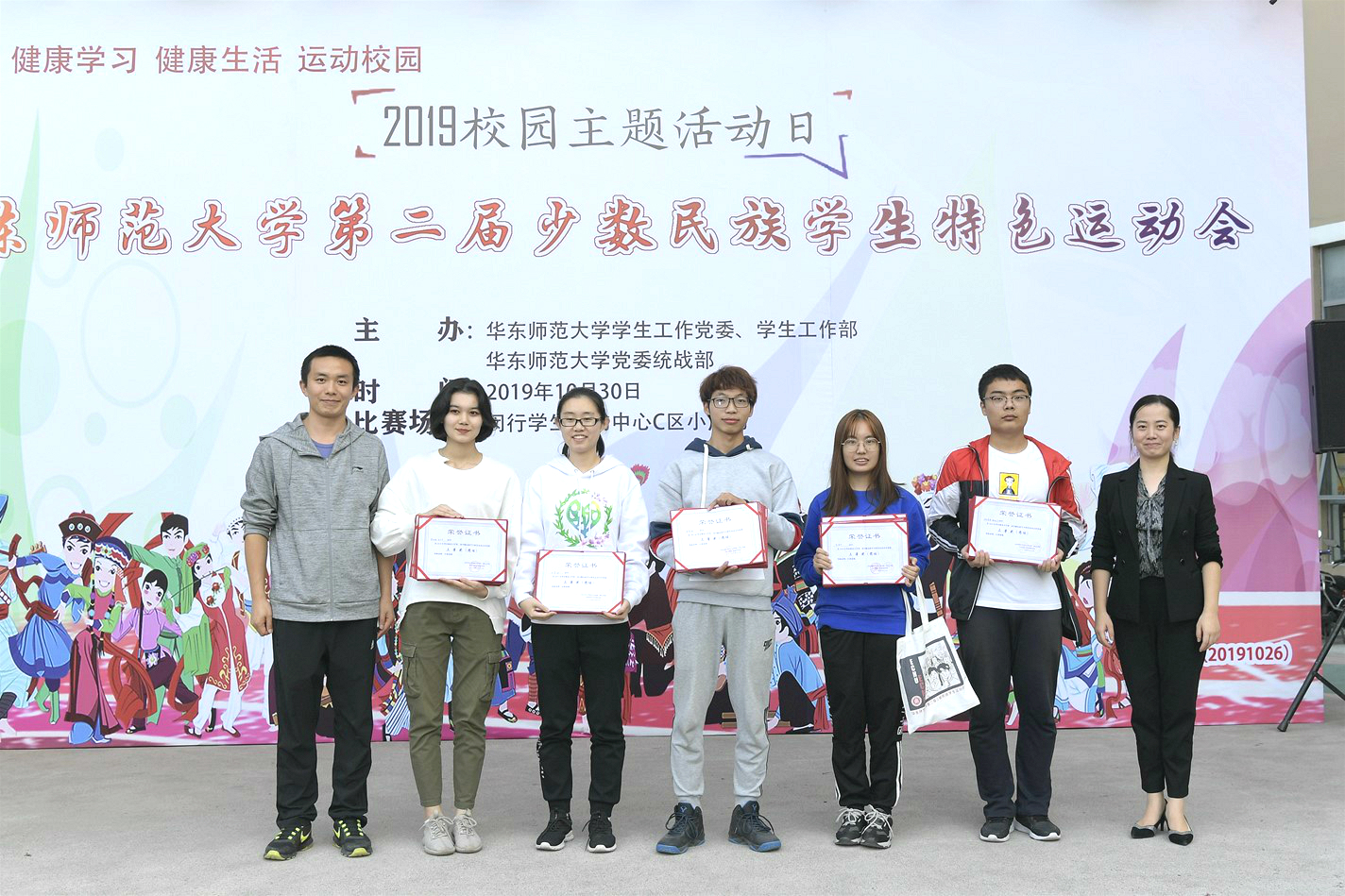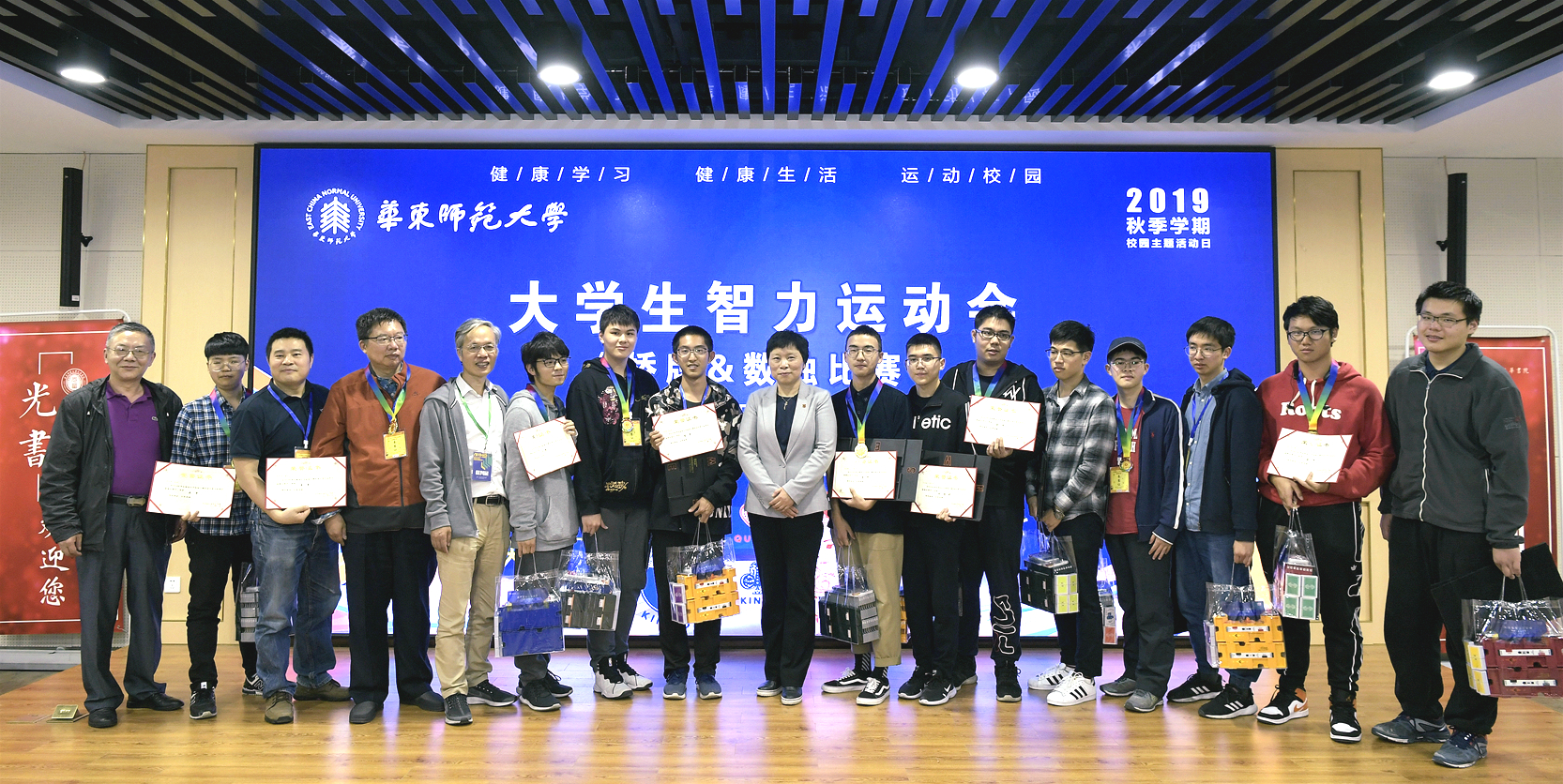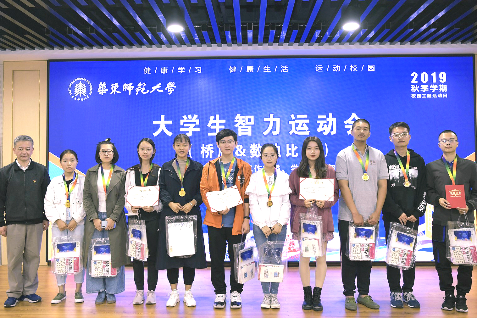 追梦新时代,健康赢未来。为持续推进和实施大学生身心健康促进计划,营造良好的校园体育文化氛围,自2017年起,我校已连续三年举办“健康学习、健康生活、运动校园”主题活动。2019年校园主题活动日全校举行了ECNU大学生游泳比赛、“书院杯”篮球友谊赛、少数民族学生特色运动会和大学生智力运动会(桥牌、数独);同时,30多个单位的分会场开展了60余项丰富多彩的活动。
