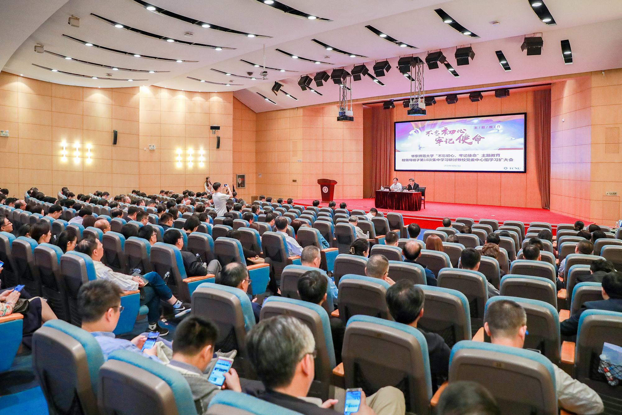 10月23日下午,华东师大“不忘初心、牢记使命”主题教育校领导班子第十次集中学习研讨暨校党委中心组学习扩大会在中山北路校区举行,深入学习贯彻习近平总书记关于扶贫工作重要论述,为提振党员干部干事创业精气神、发挥大学优势助力脱贫攻坚进行动员部署。昆明市人大常委会党组成员、寻甸县委书记何健升应邀作主题报告。校领导童世骏、钱旭红、朱民、杨昌利、曹友谊、孙真荣、梅兵、李志斌、周傲英,校党委常委、宣传部部长顾红亮,以及学校中层干部、部分特邀人员等参加学习。会议由校党委副书记朱民主持。