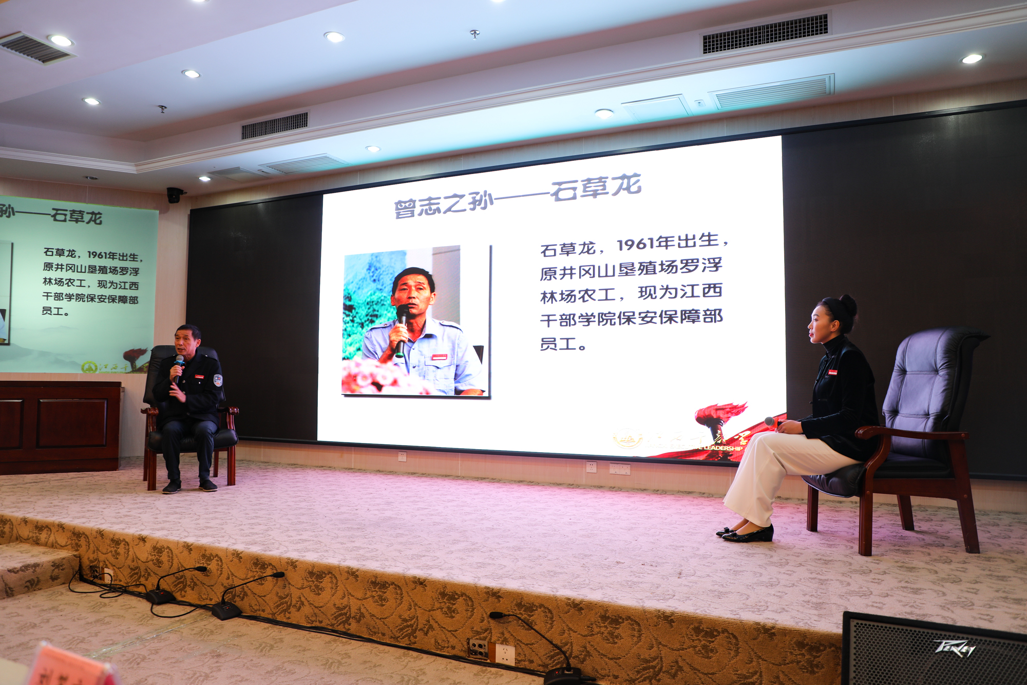 现场教学期间,学员通过红色团建破冰活动及红歌会迅速进入培训场景,转变角色;重温富有年代感的井冈山歌谣,重吟有深刻思想底蕴的诗词和井冈名言;听取中共江西省委党校、江西行政学院吴方宁教授的《井冈山斗争与井冈山精神》主题报告,帮助学员进一步回顾井冈山精神和井冈山斗争;在井冈山革命博物馆和井冈山烈士陵园开展现场教学,通过影像资料、昔时物品等回顾井冈山的历史,夯实理论教学成果,深刻缅怀在井冈山斗争时期牺牲的死难烈士,参观碑林及雕塑园,聆听现场教学,现场感受“为有牺牲多壮志,敢叫日月换新天”豪情壮志,以及为革命牺牲一切的情怀和信念;参观黄洋界哨口,集体诵读毛泽东《西江月·井冈山》,现场感受当年那场战斗的惊心动魄,重走朱毛挑粮小道,深刻体会当年斗争环境的艰苦,感受无产阶级革命家身先士卒、率先垂范的高风亮节;倾听红色故事会,陈士榘上将之子陈人康、钱壮飞之孙钱泓讲述父亲、爷爷的故事,从“赴戈壁为两弹做窝”,到“龙潭三杰”,学员们从震撼到感佩,无不被革命先辈坚定的理想信念、用生命践行对党的承诺所感动;参与“读家书、谈家风”的互动教学,深情诵读陈毅安烈士写给未婚妻的家书、左权将军写给母亲的家书、谢觉哉写给子女的家书,并分享诵读体会;参与访谈教学,曾志之孙石草龙为大家回忆了曾志传奇的一生和毕生对井冈山的牵挂与怀念,农民将军甘祖昌的孙女甘红梅深情分享了爷爷在革命胜利之后主动请辞回乡当农民的故事,心系孩子教育的上海知青杨洁如校长将自己下乡工作30年的故事娓娓道来,80后古城中心敬老院院长张志敏讲述10年来的工作经历等,老红军后代和井冈山的建设者们为学员们分享了传承革命精神的心路历程;观看情景教学“为苏维埃流尽最后一滴血”,重温井冈山革命者陈树湘和韩伟短暂却又波澜壮阔的历史。