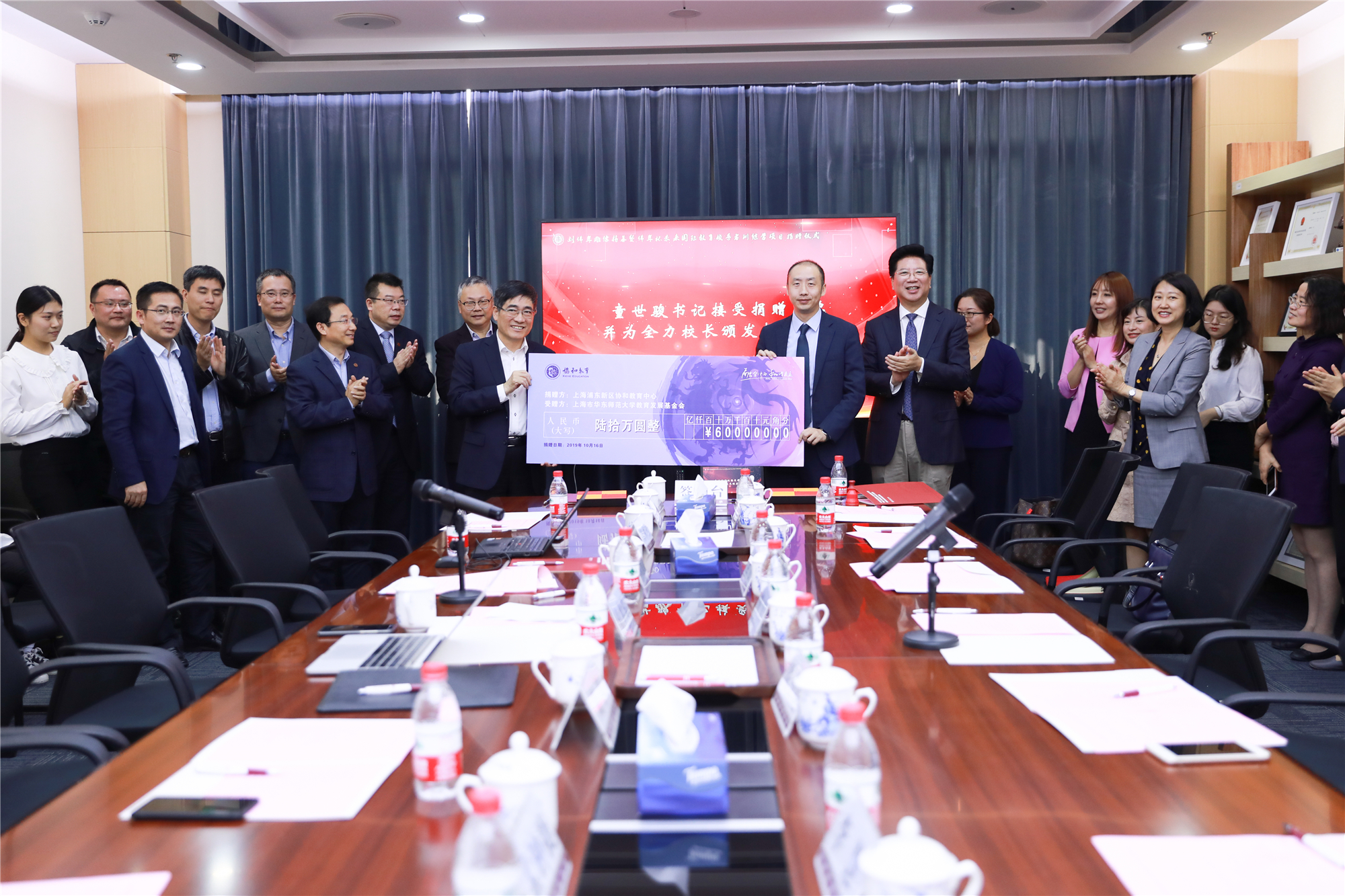 校党委书记童世骏为捐赠方代表、上海市民办万源城协和双语学校校长全力颁发捐赠证书