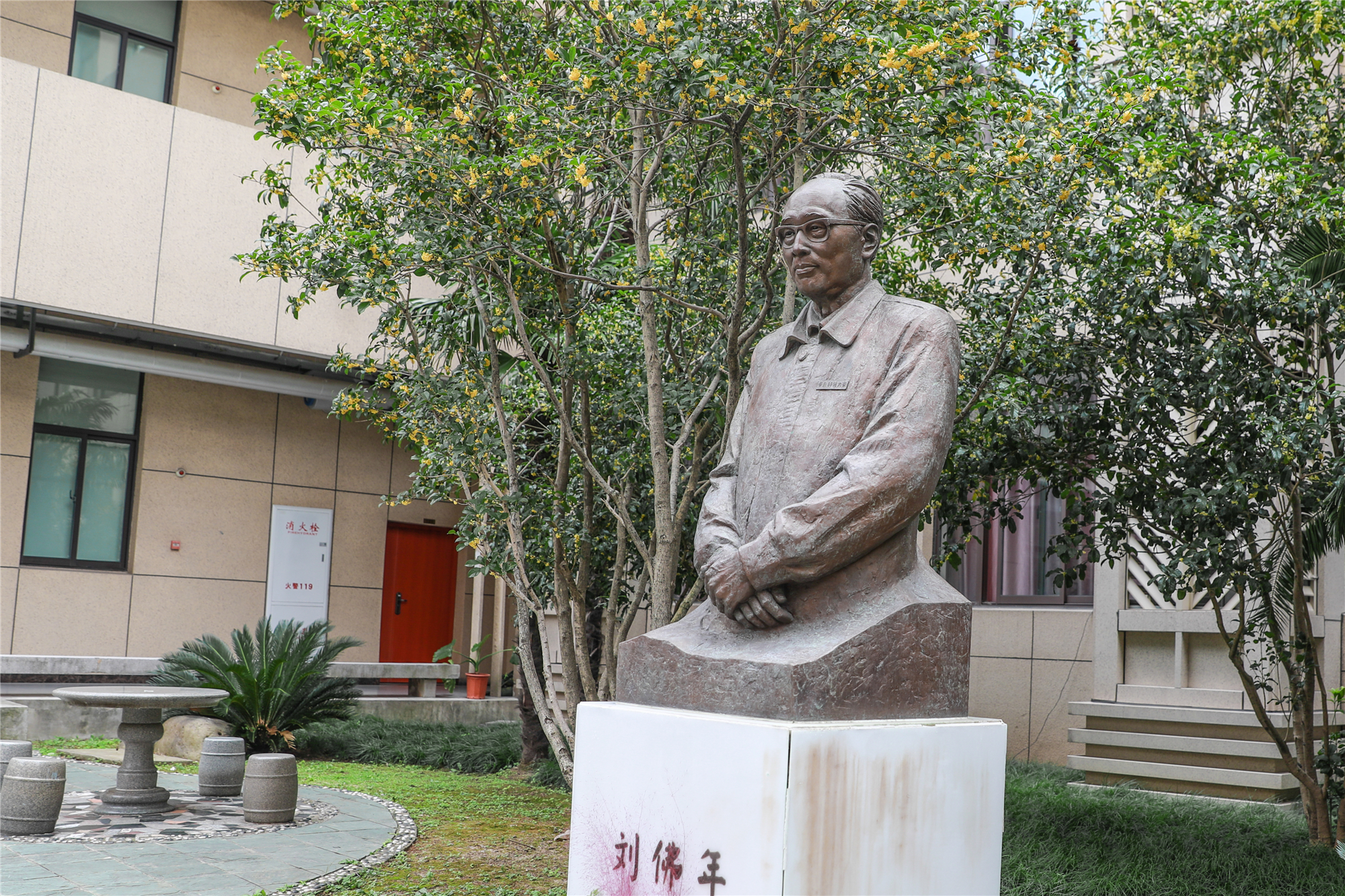 由著名雕塑家曹春生先生创作的刘佛年雕像
